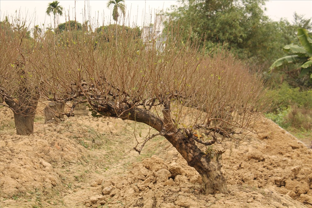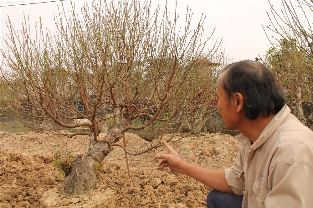 Cũng theo ông Tuân, vườn đào có khoảng hơn 200 gốc nhưng thời điểm này, nhiều cây đã được khách đến đặt thuê với giá từ 2-10 triệu đồng tùy theo dáng, thế của cây đào. Chỉ tay vào gốc đào có dáng trực (dáng thẳng đứng, thân cây vuông góc với mặt đất), ông Tuân cho biết, gốc này có giá 4 triệu đồng.