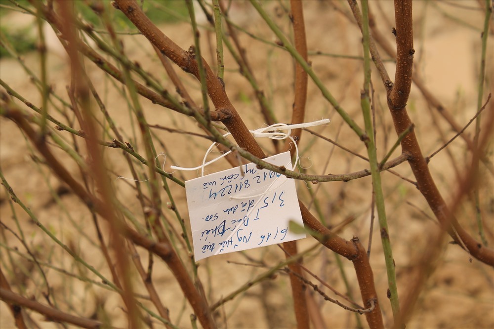 “So với những năm trước, giá đào cho thuê cao hơn 500.000 – 2.000.000 đồng/gốc. Vậy nhưng khách vẫn đặt mua vì “không nhanh là hết”. Cây nào được đặt, chủ vườn lại viết tên tuổi, địa chỉ, số điện thoại, thông tin ngày chuyển đào vào tờ giấy nhỏ, treo lên cây để tránh nhầm lẫn.