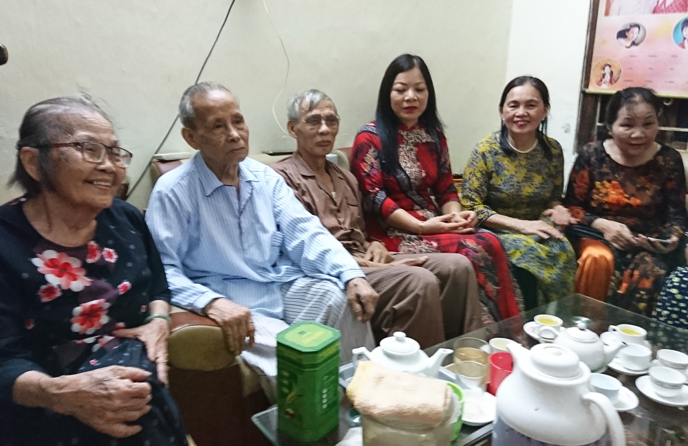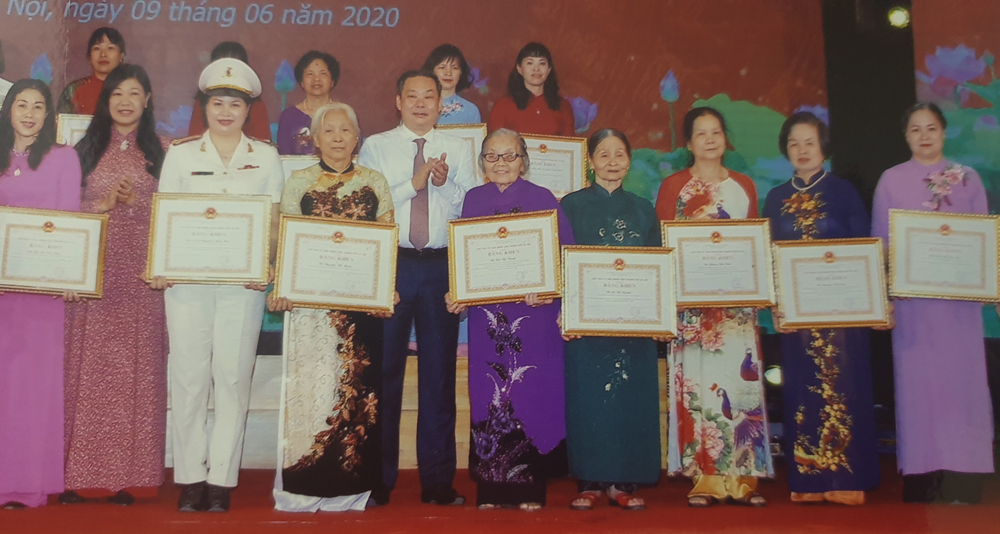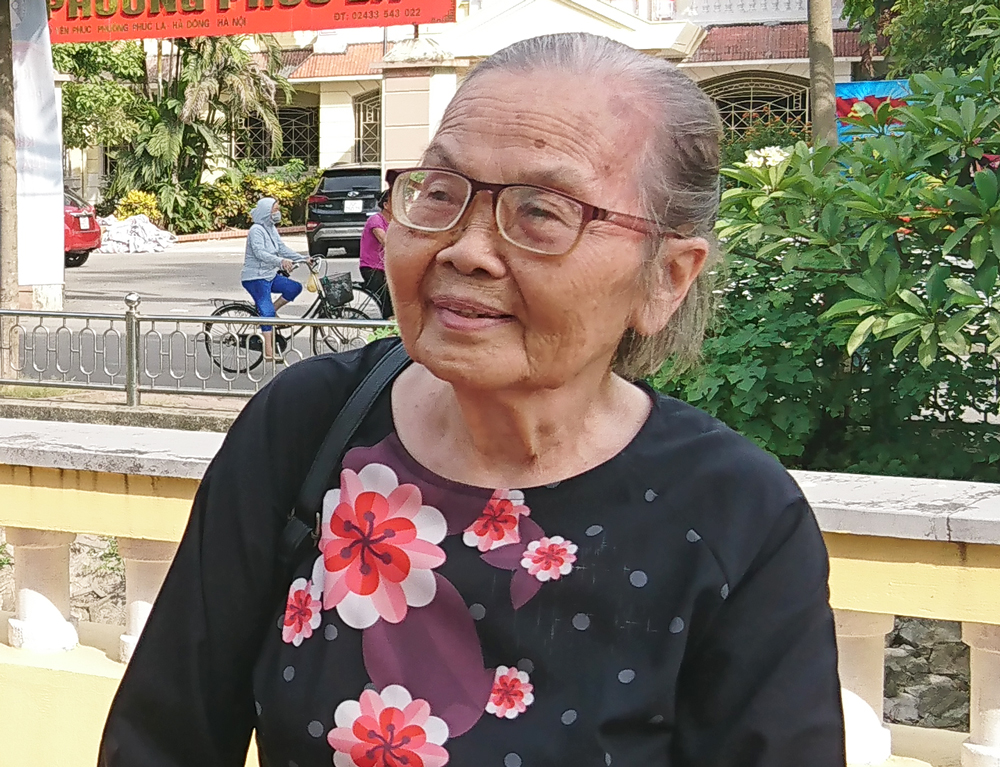 Chúng tôi gặp bà trong một ngày trời Hà Nội nắng nóng lên đến 38 độ C khi bà đang cùng chị em trong Hội Phụ nữ phường dâng hương tưởng niệm những đồng đội hy sinh vì độc lập, tự do của Tổ quốc tại nghĩa trang liệt sĩ.