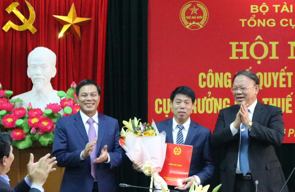 Lãnh đạo Tổng cục Thuế và UBND TP trao Quyết định bổ nhiệm và tặng hoa chúc mừng ông Hà Văn Trường