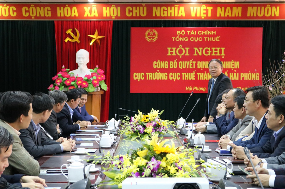 Tổng Cục trưởng Tổng cục Thuế Bùi Văn Nam chúc mừng và bày tỏ tin tưởng vào lãnh đạo mới của Cục Thuế Hải Phòng