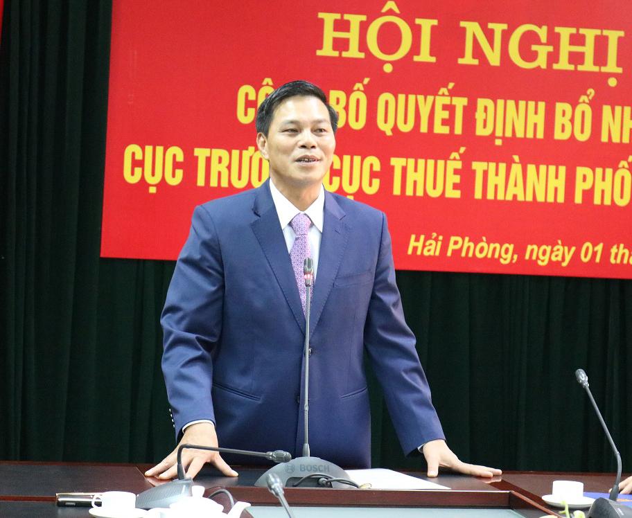 Tân Cục trưởng Cục thuế thành phố Hải Phòng Hà Văn Trường bày tỏ quyết tâm cùng ngành thuế thành phốhoàn thành tốt nhiệm vụ được giao