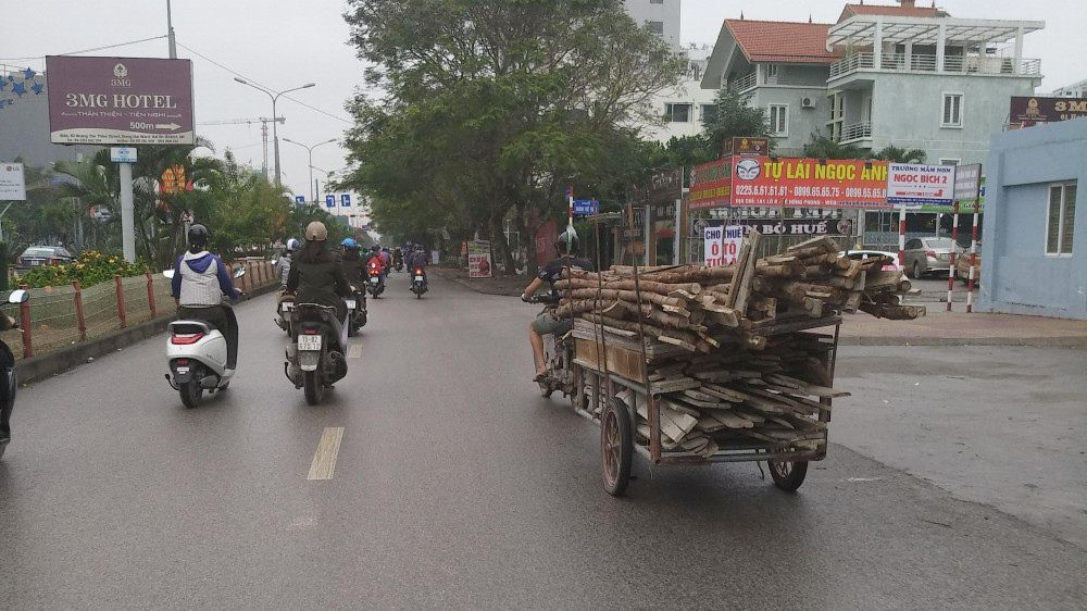 Xe tự chế kéo theo rơ móoc chở hàng cồng kềnh nghênh ngang trên phố gây nguy hiểm cho người và phương tiện tham gia giao thông.