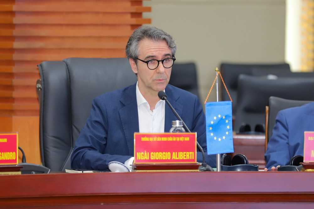 Đại sứ Giorgio Aliberti, Trưởng Phái đoàn Liên minh Châu Âu tại Việt Nam nhấn mạnh, thông qua chuyến thăm và làm việc lần này tại Hải Phòng sẽ có những giải pháp kết nỗi hỗ trợ Hải Phòng trong phát triển kinh tế xanh, kinh tế tuần hoàn, tăng cường sử dụng năng lượng tái tạo, phát triển hạ tầng, logistics…