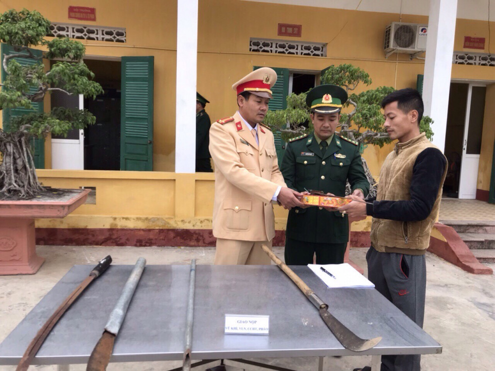 Kết quả, chiều 16-1, có 2 cá nhân gồm các anh Hoàng Văn Hải, sinh 1984 và Đoàn Viết Duy, sinh 1986, đều trú tại thị trấn Cát Hải, huyện Cát Hải tự giác giao nộp 1,4 kg pháo nổ do Trung Quốc sản xuất và 3 dao, kiếm tự tạo.