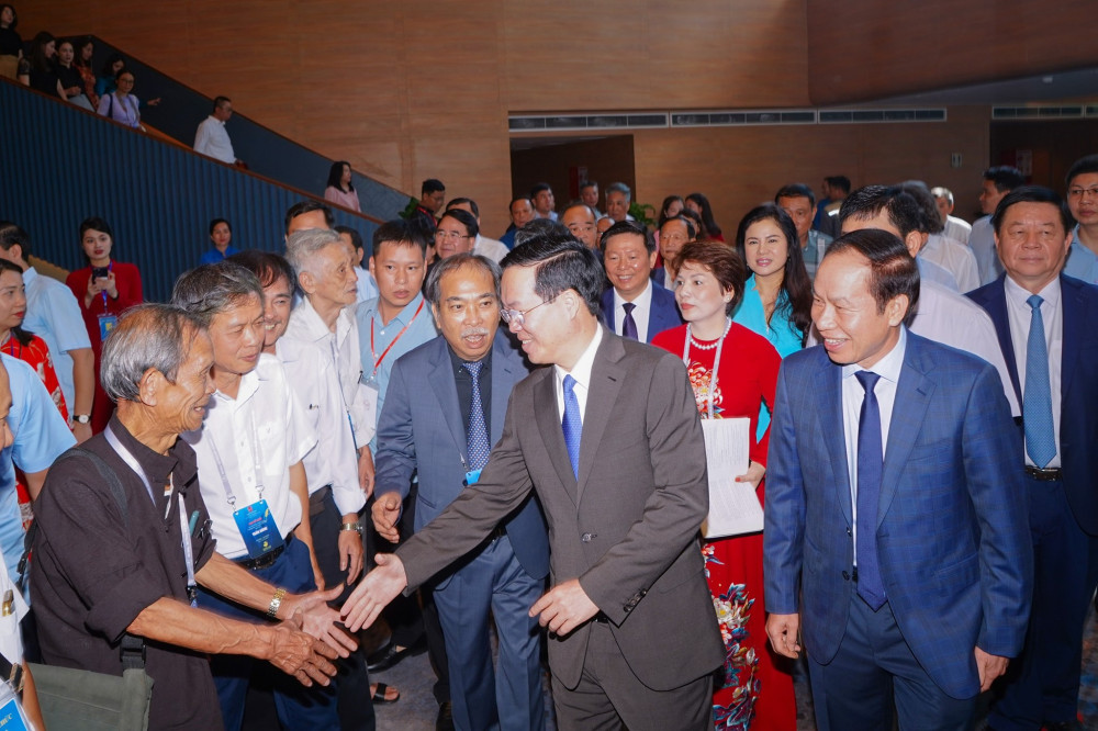 Tại Hội nghị này, chúng ta vô cùng phấn khởi được gặp gỡ các nhà văn lão thành, trong đó rất nhiều nhà văn đã là “nhà văn chiến sĩ”, đi qua các cuộc kháng chiến đầy gian khổ, hy sinh, sáng tạo nên những tác phẩm mang dấu ấn thời đại, như những “đoàn quân” đặc biệt mang sức mạnh tinh thần Việt Nam bất diệt, góp phần quan trọng vào chiến thắng chung của dân tộc.