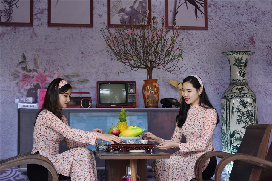 Đi hết những tiểu cảnh tràn ngập sắc màu với chủ đề “Xuân Quảng Ninh tươi đẹp”, du khách sẽ được du ngoạn vào thế giới của “Tết xưa hoài niệm” – nơi tái hiện không khí Tết ở làng quê Bắc Bộ những năm 1990. Ở đây bạn sẽ thấy bánh pháo, bánh chưng xanh, những bộ đồ dùng sinh hoạt nhuốm màu thời gian theo style hoài cổ.