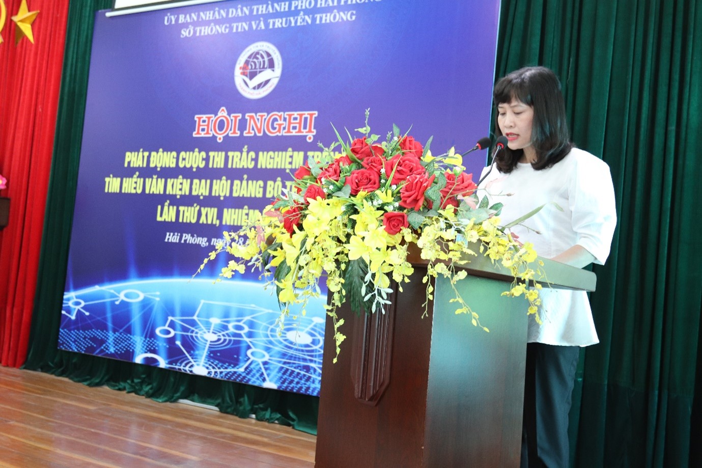 Sáng 28/6, Sở Thông tin và Truyền thông Hải Phòng phát động Cuộc thi trắc nghiệm trên Internet tìm hiểu về văn kiện Đại hội Đảng bộ thành phố Hải Phòng lần thứ XVI, nhiệm kỳ 2020-2025. Tới dự Hội nghị có các đồng chí: Phạm Xuân Thanh, Ủy viên Thành ủy, Bí thư Đảng ủy khối các cơ quan thành phố; Đào Văn Hoàn – Phó Trưởng Ban Tuyên giáo Thành ủy, Trưởng ban Giám khảo cuộc thi; Lương Hải Âu – Giám đốc Sở Thông tin và Truyền thông.