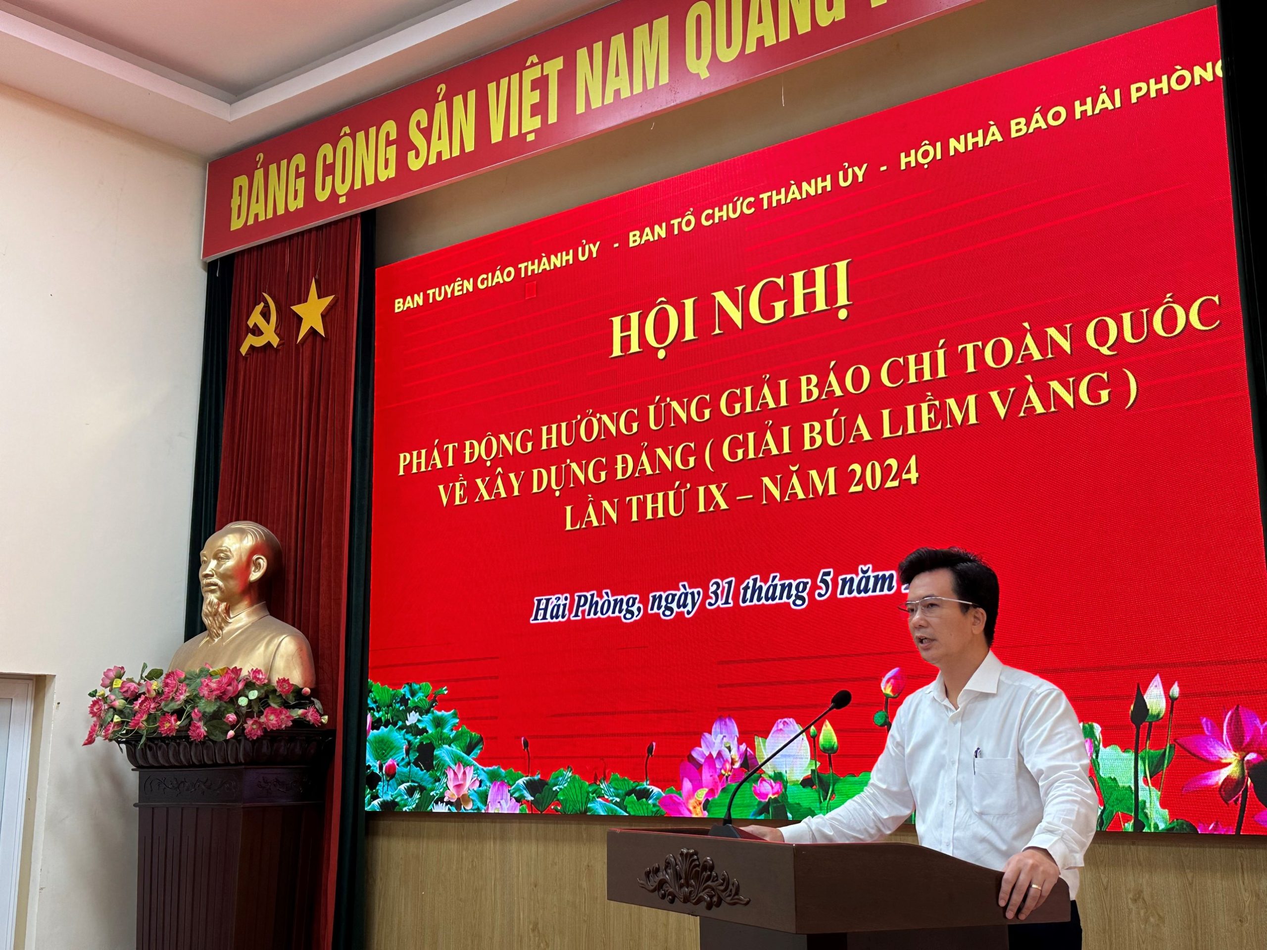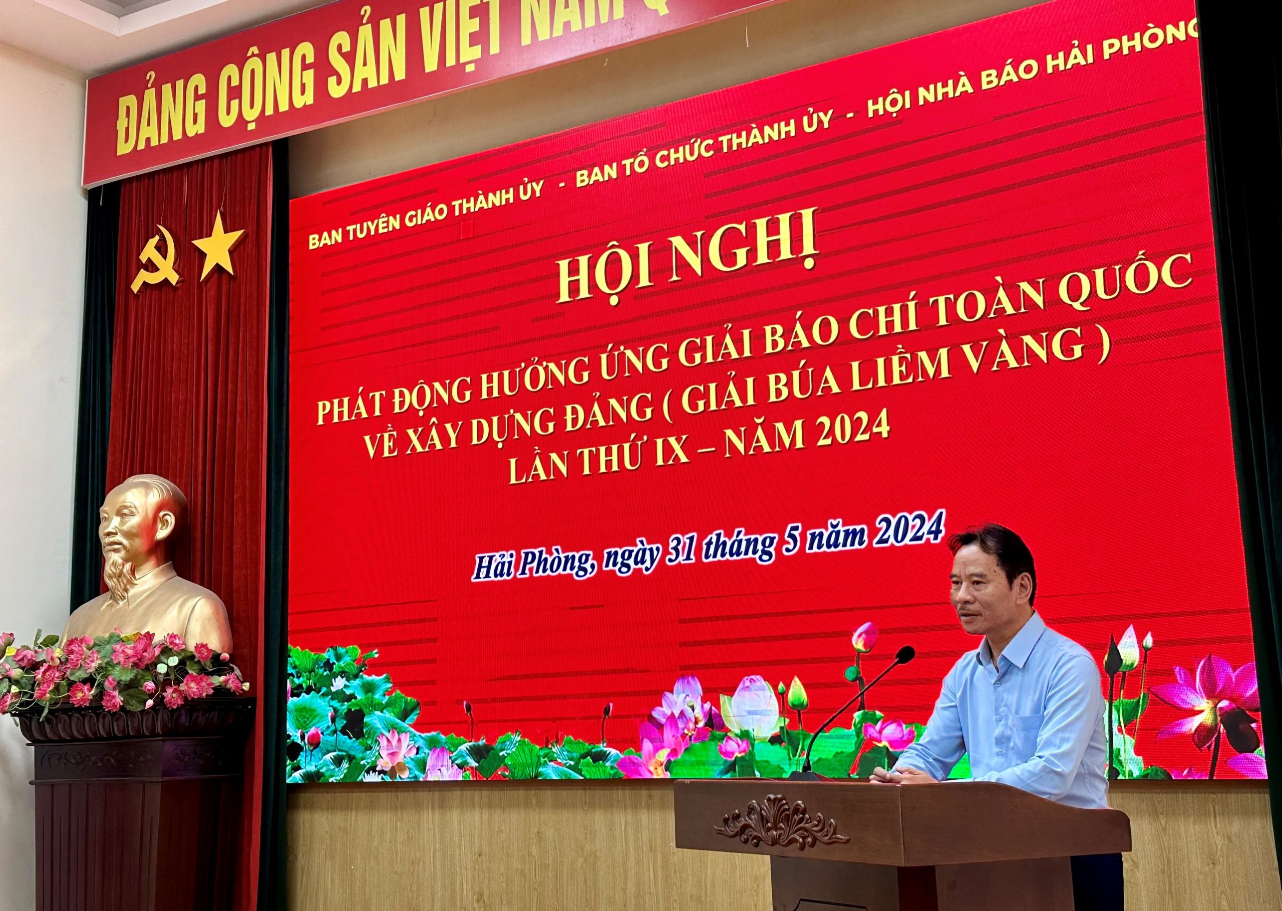 Nhấn mạnh phát biểu tại Hội nghị phát động, Phó Chủ tịch Thường trực Hội Nhà báo Hải Phòng Nguyễn Anh Tú nêu, việc hưởng ứng tham gia Giải Búa liềm vàng lần thứ IX – năm 2024 được Hội Nhà báo Hải Phòng xác định không chỉ là nhiệm vụ, là trách nhiệm của đội ngũ các nhà báo trong công tác tuyên truyền, mà còn là diễn đàn để các nhà báo bày tỏ tình cảm, quan điểm tư tưởng của mình đối với Đảng và Bác Hồ kính yêu, từ đó lan tỏa những cách làm tốt, gương điển hình tiên tiến trong công tác xây dựng Đảng và cuộc vận động “Học tập và làm theo tư tưởng, đạo đức, phong cách Hồ Chí Minh”, cũng như kịp thời phát hiện, ngăn chặn những tư tưởng lệch lạc, những biểu hiện sai trái, những hành vi tham nhũng, lãng phí, tiêu cực trong cán bộ đảng viên…nhằm xây dựng Đảng trong sạch, vững mạnh, xứng đảng với niềm tin yêu của Nhân dân.