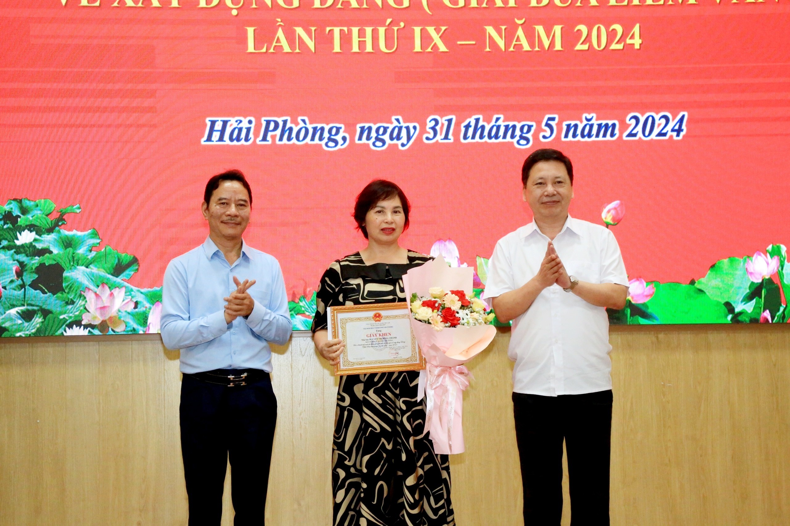 Nhân dịp này, Chủ tịch Hội Nhà báo Hải Phòng quyết định tặng thưởng Giấy khen cho hội viên Nguyễn Thị Hồng Thanh (Chuyên đề An ninh Hải Phòng) vinh dự được nhận Giải Khuyến khích Giải Búa liềm vàng lần thứ VIII – năm 2023./.