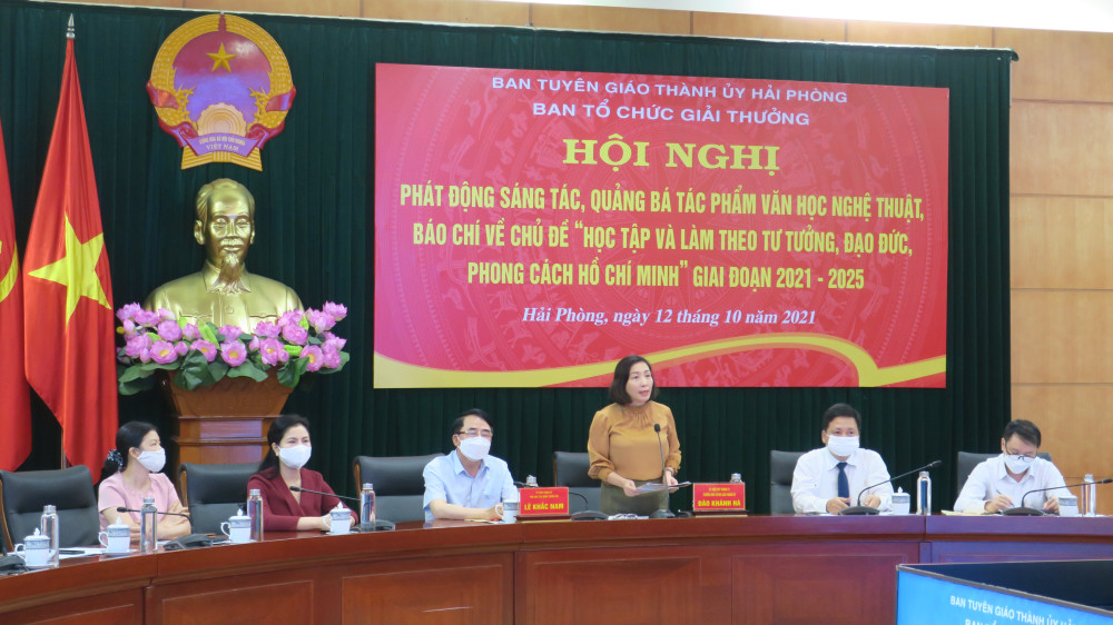 Phát biểu tại Hội nghị, đồng chí Đào Khánh Hà, Ủy viên Ban thường vụ Thành ủy, Trưởng Ban Tuyên giáo Thành ủy cho biết Hội nghị phát động Giải thưởng được tổ chức vào thời điểm có ý nghĩa quan trọng và đặc biệt, đúng dịp tròn 75 năm ngày Bác Hồ từ Pháp trở về nước qua bến Ngự-Hải Phòng (20/10/1946-20/10/2021), đây cũng là thời điểm thành phố đang chuẩn bị cho Hội nghị sơ kết 05 năm thực hiện Chỉ thị số 05-CT/TW, ngày 15/5/2016 của Bộ Chính trị về đẩy mạnh học tập và làm theo tư tưởng, đạo đức, phong cách Hồ Chí Minh; kỷ niệm 60 năm Ngày mở Đường Hồ Chí Minh trên biển (23/10/1961-23/10/2021), Hải Phòng tự hào là điểm đầu xuất phát của những “con tàu không số” làm nên con đường huyền thoại mang tên “Đường Hồ Chí Minh trên biển”.