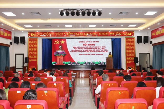 Sáng 11/10, Quận ủy Lê Chân tổ chức Hội nghị đánh giá tình hình thực hiện Kết luận số 01-KL/TW, ngày 18/5/2021 của Bộ Chính trị về tiếp tục thực hiện Chỉ thị số 05-CT/TW “về đẩy mạnh học tập và làm theo tư tưởng, đạo đức, phong cách Hồ Chí Minh” năm 2023-2024; Phát động Hội thi “Lê Chân trong trái tim tôi” lần thứ VI; Ra mắt Bản tin điện tử – Bản tin Đảng bộ quận số đặc biệt và công trình tuyên truyền trực quan Kỷ niệm 55 năm thực hiện Di chúc của Chủ tịch Hồ Chí Minh. Đồng chí Đào Khánh Hà, Ủy viên Ban Thường vụ Thành ủy, Trưởng Ban Tuyên giáo Thành ủy dự và chỉ đạo Hội nghị.