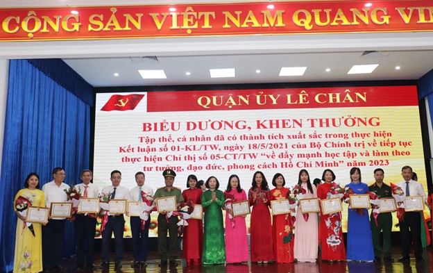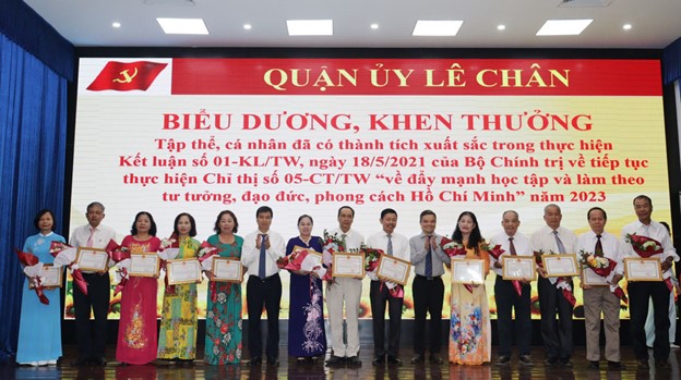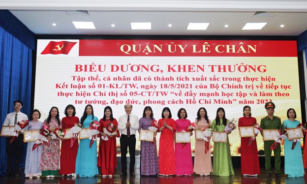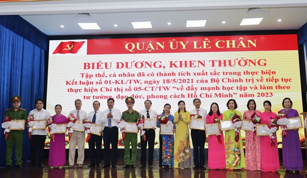 Tại Hội nghị, Chủ tịch UBND quận Lê Chân đã quyết định tặng Giấy khen cho 40 tập thể, 15 cá nhân có thành tích xuất sắc trong thực hiện Kết luận số 01-KL/TW, ngày 18/5/2021 của Bộ Chính trị về tiếp tục thực hiện Chỉ thị số 05-CT/TW “về đẩy mạnh học tập và làm theo tư tưởng, đạo đức, phong cách Hồ Chí Minh” năm 2023-2024.