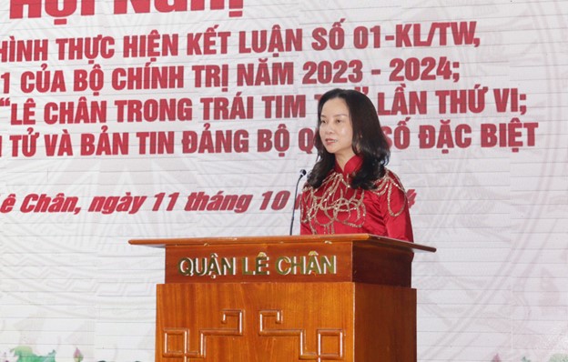 Phát biểu chỉ đạo tại Hội nghị, đồng chí Đào Khánh Hà, Trưởng Ban Tuyên giáo Thành ủy đánh giá, quận Lê Chân là một địa phương tiêu biểu, có nhiều mô hình, cách làm sáng tạo phù hợp với tình hình thực tiễn; tích cực hưởng ứng các hoạt động của thành phố chỉ đạo, triển khai; trên địa bàn quận có nhiều tấm gương tiêu biểu, có sức lan toả mạnh mẽ trong xã hội.