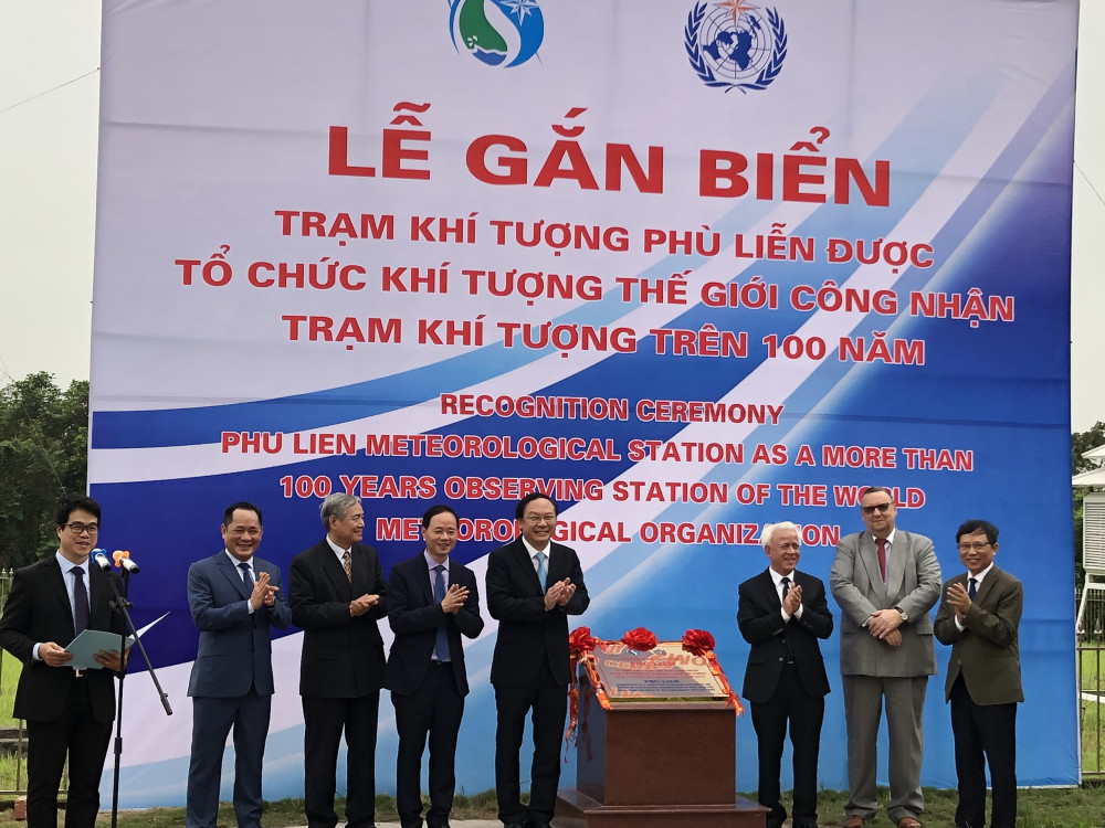 Đại biểu tham gia gắn biển Trạm khí tượng Phù Liễn trên 100 năm