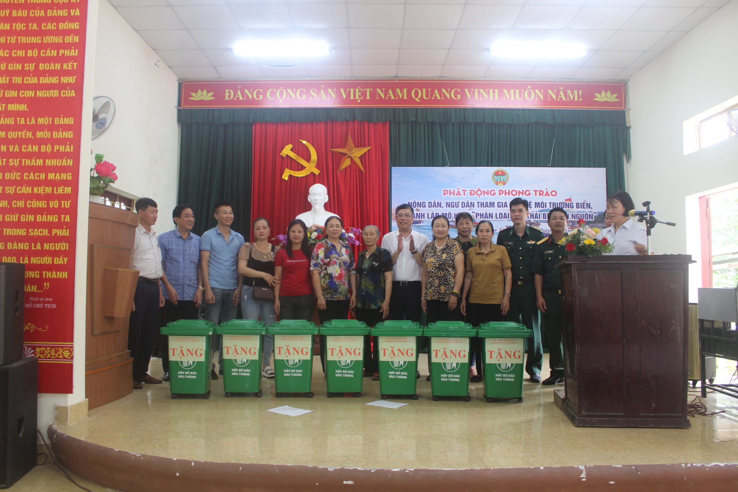 Nhân dịp này, Hội Nông dân thành phố ra mắt Mô hình điểm về “Phân loại rác thải biển tại nguồn” trên địa bàn xã Đại Hợp và trao tặng 09 thùng rác tặng các thành viên tham gia mô hình.