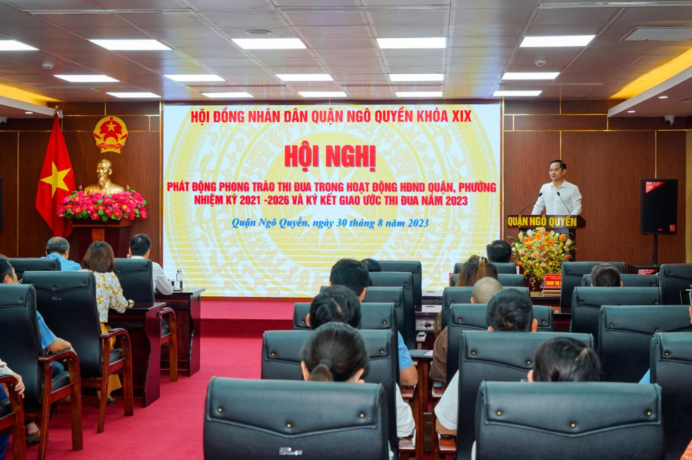Chiều 30/8, Thường trực HĐND quận Ngô Quyền tổ chức Hội nghị phát động phong trào thi đua trong hoạt động của HĐND quận và 12 phường, nhiệm kỳ 2021-2026; triển khai Ký kết giao ước thi đua năm 2023 với chủ đề “Tiếp tục đổi mới, nâng cao chất lượng, hiệu lực, hiệu quả và đẩy mạnh chuyển đổi số trong hoạt động của HĐND”.