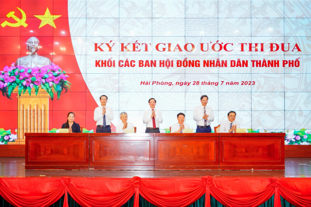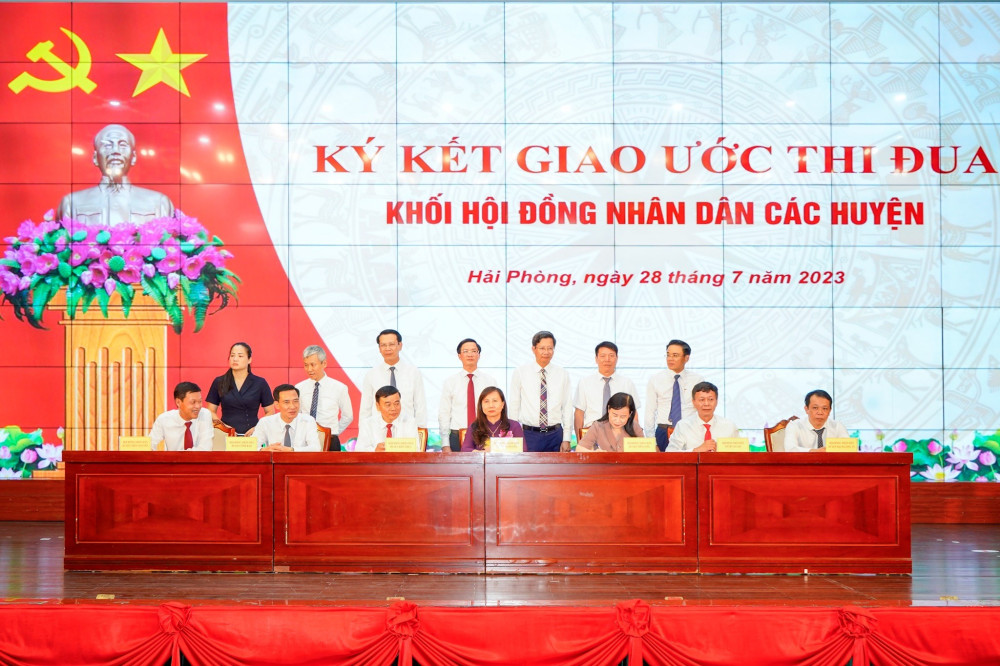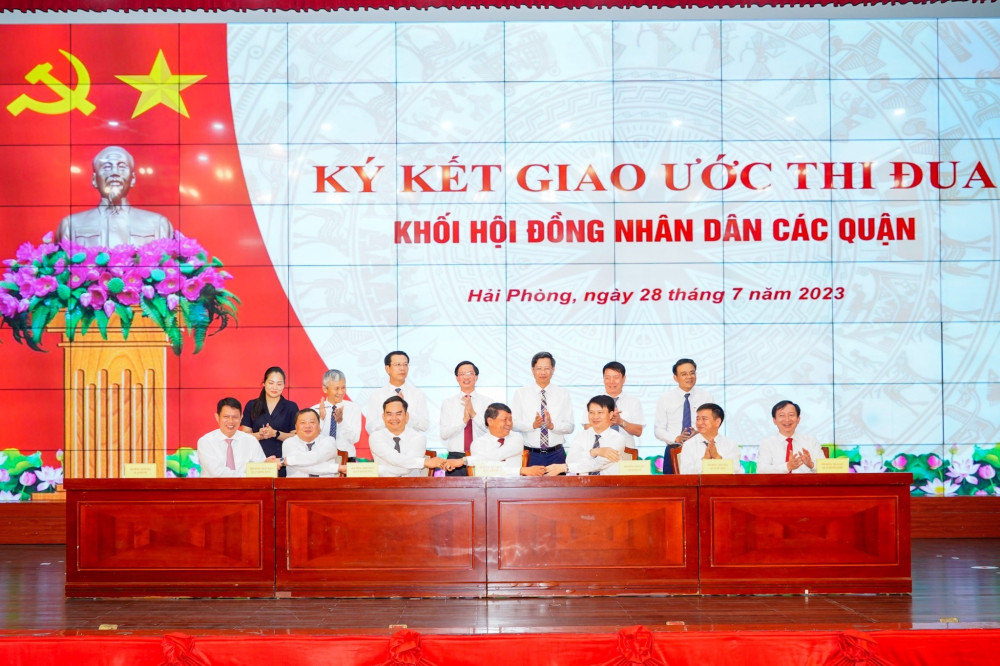 Tại Hội nghị đã diễn ra phần ký giao ước thi đua Khối các Ban HĐND thành phố, ký giao ước thi đua Khối HĐND các quận, ký giao ước thi đua Khối HĐND các huyện.