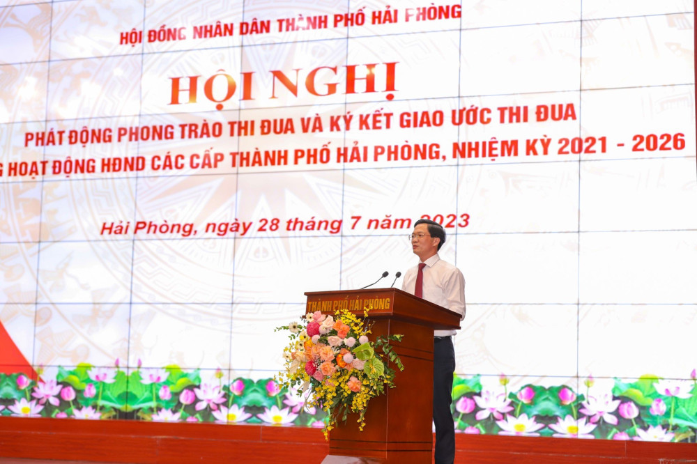 Thường trực HĐND thành phố phát động phong trào thi đua trong hoạt động HĐND các cấp thành phố nhiệm kỳ 2021-2026 với chủ đề thi đua “Tiếp tục đổi mới, nâng cao chất lượng, hiệu lực, hiệu quả và đẩy mạnh chuyển đổi số trong hoạt động của HĐND các cấp trên địa bàn thành phố Hải Phòng” nhằm đổi mới phương thức chỉ đạo, lãnh đạo của Đảng với hệ thống chính trị trong giai đoạn mới; nhằm kịp thời biểu dương, tôn vinh, khen thưởng các điển hình tiên tiến, các mô hình, phương thức đổi mới, sáng tạo trong hoạt động của HĐND các cấp theo hướng ngày càng thực chất, hiệu quả để tuyên truyền, nhân rộng, tạo sự lan toả trong phong trào thi đua của HĐND các cấp, nâng cao trách nhiệm, vai trò trước cử tri và Nhân dân thành phố.