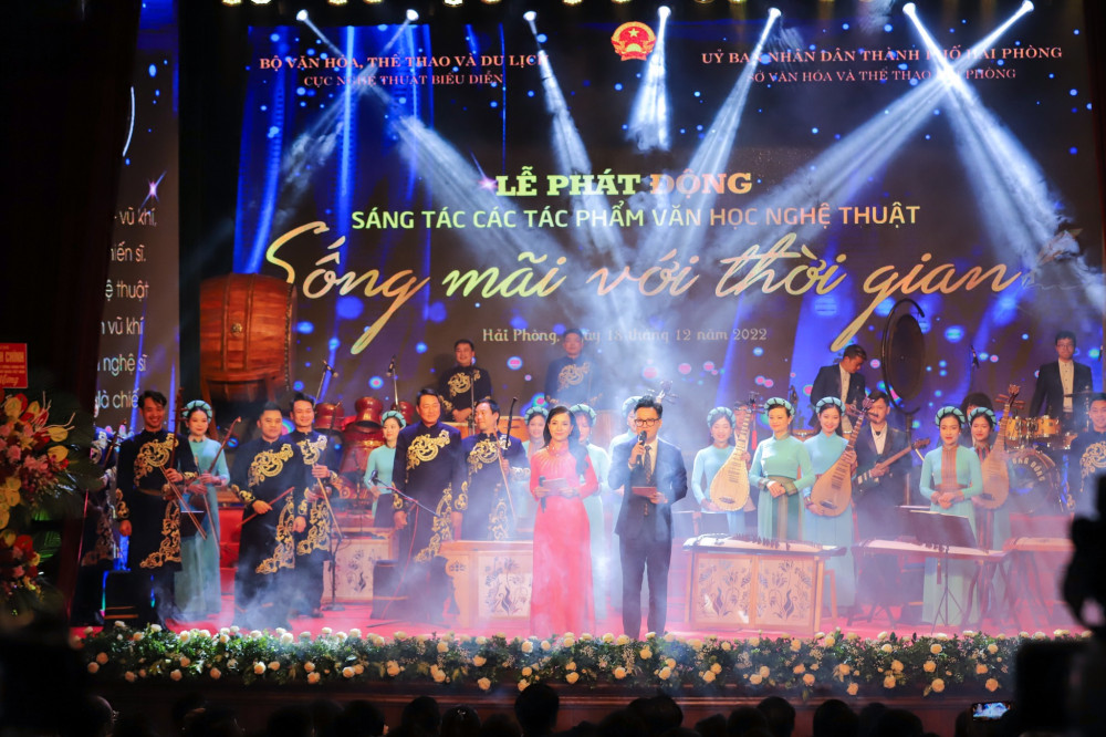Tối 18/12, tại Nhà hát thành phố Hải Phòng, Bộ Văn hóa, Thể thao và Du lịch phối hợp với UBND thành phố Hải Phòng tổ chức Lễ Phát động sáng tác các tác phẩm văn học nghệ thuật “Sống mãi với thời gian” hướng tới chào mừng kỷ niệm 100 năm Ngày thành lập Đảng Cộng sản Việt Nam và 85 năm Ngày Quốc khánh Nước Cộng hòa xã hội chủ nghĩa Việt Nam.