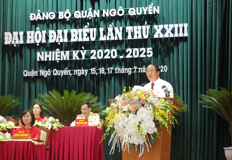 Phát biểu chỉ đạo tại Đại hội, đồng chí Bí thư Thành ủy Lê Văn Thành nhiệt liệt biểu dương và chúc mừng những thành tích mà Đảng bộ, chính quyền, quân và dân quận Ngô Quyền đã đạt được trong nhiệm kỳ vừa qua. Đồng chí nêu rõ, quận Ngô Quyền là địa danh gắn liền với lịch sử hình thành và phát triển đô thị Hải Phòng. Quận là trung tâm kinh tế, văn hóa xã hội, khoa học công nghệ, là đầu mối giao thông quan trọng, tập trung nhiều trung tâm thương mại, dịch vụ tổng hợp của thành phố. Điều đó đặt ra yêu cầu, các nhiệm vụ trọng tâm, giải pháp chủ yếu mà Đại hội đề ra cho nhiệm kỳ tới phải thiết thực, mang tính khả thi cao. Báo cáo chính trị và dự thảo nghị quyết trình Đại hội đã thể hiện rất sâu sắc những nhiệm vụ, giải pháp cho nhiệm kỳ 2020÷2025.