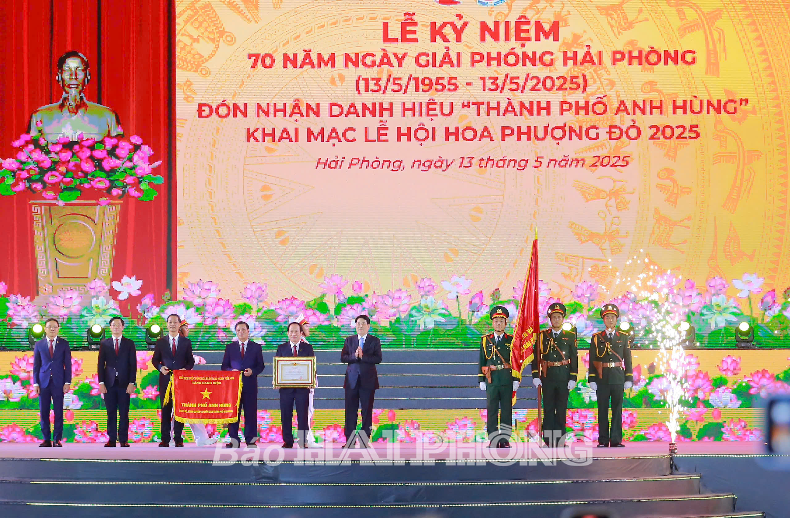 Tại Lễ kỷ niệm, Chủ tịch nước Lương Cường đã trao danh hiệu “Thành phố Anh hùng” tặng Đảng bộ, chính quyền và Nhân dân thành phố Hải Phòng, ghi nhận thành tích đặc biệt xuất sắc và toàn diện, đóng góp to lớn của Đảng bộ, Chính quyền và Nhân dân thành phố vào sự nghiệp xây dựng Chủ nghĩa xã hội và bảo vệ Tổ quốc. Đồng chí Lê Tiến Châu, Ủy viên Trung ương Đảng, Bí thư Thành ủy, Trưởng Đoàn Đại biểu Quốc hội thành phố Hải Phòng cùng các đồng chí Thường trực Thành ủy, đại diện Đảng bộ, chính quyền và nhân dân thành phố Hải Phòng đón nhận phần thưởng cao quý của Đảng, Nhà nước.