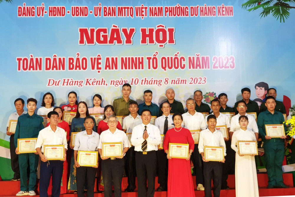 Tại Ngày hội, nhiều tập thể, cá nhân có thành tích xuất sắc trong phong trào toàn dân bảo vệ an ninh Tổ quốc năm 2023 được nhận Bằng khen, Giấy khen của UBND thành phố, Ủy ban MTTQ Việt Nam thành phố, Giám đốc Công an thành phố, UBND quận Lê Chân và UBND phường Dư Hàng Kênh.