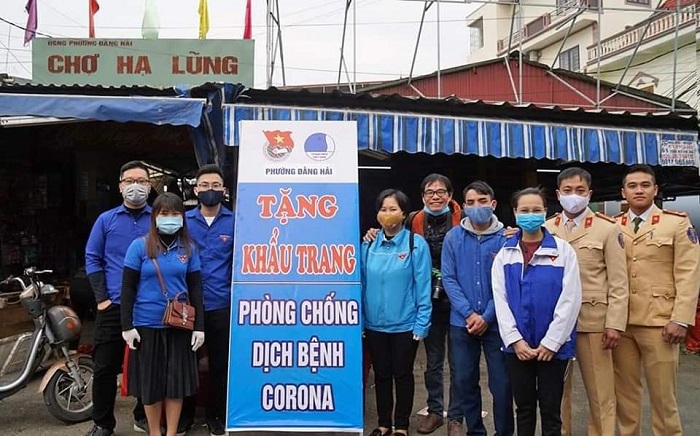 Trước diễn biến phức tạp của dịch bệnh viêm đường hô hấp cấp do chủng mới virus Corona (Covid-19), vừa qua, tại điểm Chợ Hạ Lũng, Ban Chấp hành Đoàn phường Đằng Hải, quận Hải An đã phối hợp Đoàn thanh niên Công an quận Hải An tổ chức phát trên 500 chiếc khẩu trang vải, 1.000 tờ rơi tuyên truyền.