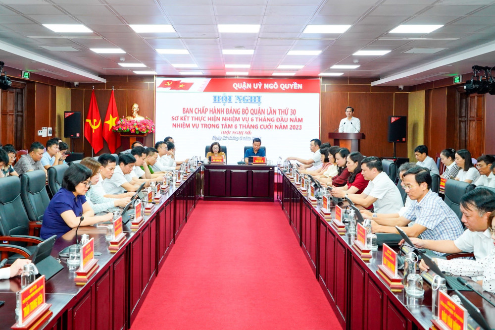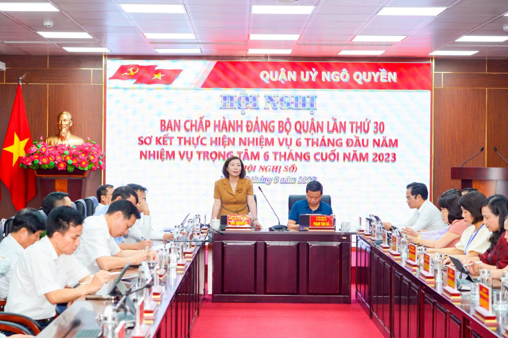 Theo báo cáo đánh giá của Quận ủy Ngô Quyền, tình hình kinh tế-xã hội của quận trong 6 tháng đầu năm tiếp tục ổn định, các nhiệm vụ Chủ đề năm 2023 của thành phố và quận được xác định cụ thể, rõ lộ trình, triển khai đạt kết quả khá. Quận ủy và các cấp ủy tập trung lãnh đạo, chỉ đạo quyết liệt, đồng bộ, sát yêu cầu thực tiễn các nhiệm vụ, hoàn thành 6/19 chỉ tiêu, kế hoạch năm 2023. Công tác xây dựng Đảng về chính trị, tư tưởng, đạo đức được tăng cường, có nhiều đổi mới; công tác tổ chức, cán bộ tiếp tục được triển khai bài bản, đáp ứng yêu cầu nhiệm vụ…