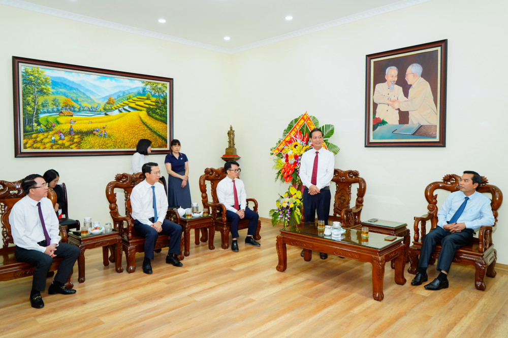 Cùng đi có các đồng chí: Lê Khắc Nam, Phó Chủ tịch UBND thành phố; Bùi Đức Quang, Phó Chủ tịch HĐND thành phố; Lê Trí Vũ, Trưởng Ban Dân vận Thành ủy; cùng đại diện lãnh đạo một số Sở, ban, ngành thành phố.