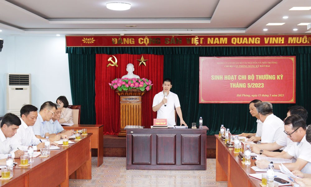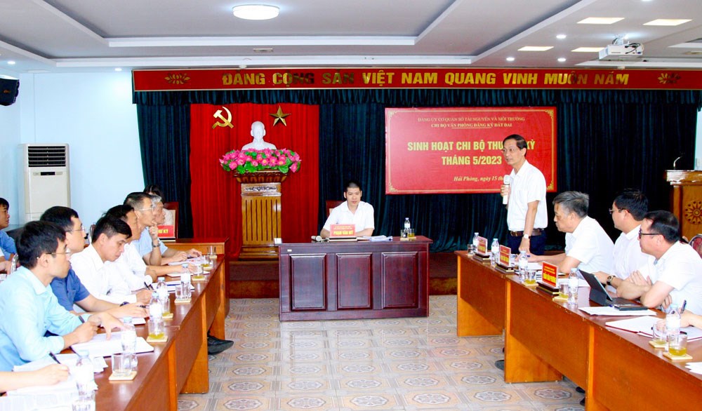 Chiều 15/5, đồng chí Đỗ Mạnh Hiến, Phó Bí thư Thường trực Thành ủy, Trưởng Ban Chỉ đạo của Thành ủy thực hiện Chỉ thị số 10-CT/TW của Ban Bí thư Trung ương Đảng (khóa X) về nâng cao chất lượng sinh hoạt chi bộ đến dự và chỉ đạo sinh hoạt Chi bộ thường kỳ tháng 5/2023 tại Chi bộ Văn phòng đăng ký đất đai thuộc Đảng bộ Cơ quan Sở Tài Nguyên và Môi trường.