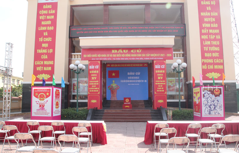 Theo báo cáo của Ủy ban bầu cử huyện Vĩnh Bảo, đến nay, công tác chuẩn bị bầu cử của huyện thực hiện các bước chuẩn bị đúng tiến độ, bảo đảm các quy trình, công khai, dân chủ. Toàn huyện có 9 Ban bầu cử HĐND huyện, 236 Ban bầu cử cấp xã và 242 Tổ bầu cử đại biểu đại biểu Quốc hội khóa XV và đại biểu HĐND các cấp nhiệm kỳ 2021-2026. Đến 9 giờ ngày 21/5/2021, số cử tri được niêm yết danh sách để tham gia bầu cử là 153.035 cử tri; trong đó số cử tri vắng mặt tại địa phương là 6.255 cử tri, số cử tri có mặt tại địa phương là 146.780 cử tri. Huyện đã hoàn tất công tác trang trí, khánh tiết, chuẩn bị cơ sở vật chất tại các khu vực bầu cử, tiến hành tổng vệ sinh môi trường, phun khử khuẩn, thực hiện nghiêm các quy định phòng, chống dịch bệnh COVID-19.