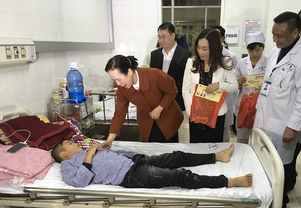 Đến Khoa Hồi sức cấp cứu, Bệnh viện Trẻ em Hải Phòng, Phó Bí thư Thường trực Thành ủy Nguyễn Thị Nghĩa trực tiếp thăm hỏi, động viên các bệnh nhi và thân nhân phải đón Tết trong bệnh viện. Chia sẻ những khó khăn, vất vả của đội ngũ y bác sĩ, đồng chí Phó Bí thư Thường trực Thành ủy chúc các y bác sĩ một năm mới dồi dào sức khỏe, hạnh phúc, cố gắng, tận tâm cứu chữa để các bệnh nhi có thể sớm khỏe mạnh trở lại. Được biết, ngày cuối năm này, Khoa Hồi sức cấp cứu có 16 trong tổng số 178 bệnh nhi tại Bệnh viện Trẻ em Hải Phòng phải ở lại điều trị nội trú.