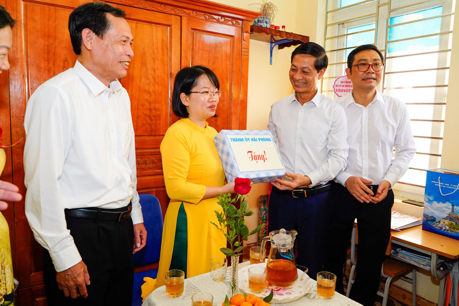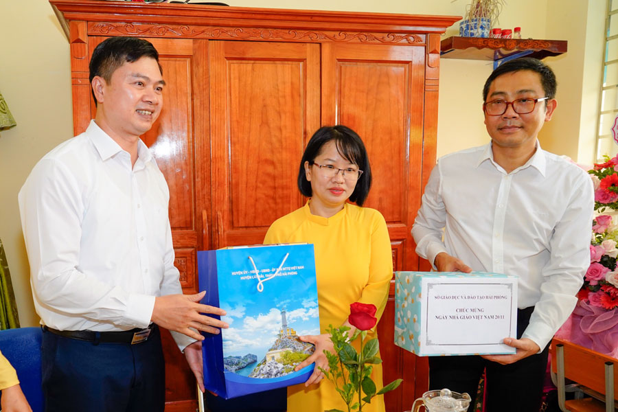Đồng chí Phó Bí thư Thường trực Thành ủy thăm hỏi, chúc sức khỏe và cảm ơn những đóng góp cống hiến của Nhà giáo đối với sự nghiệp giáo dục và đào tạo của thành phố nói chung, huyện đảo Cát Hải nói riêng. Đồng thời mong muốn Nhà giáo tiếp tục nỗ lực, vượt qua khó khăn, phát huy kinh nghiệm, tâm huyết, đóng góp nhiều hơn nữa cho sự nghiệp giáo dục của huyện đảo.