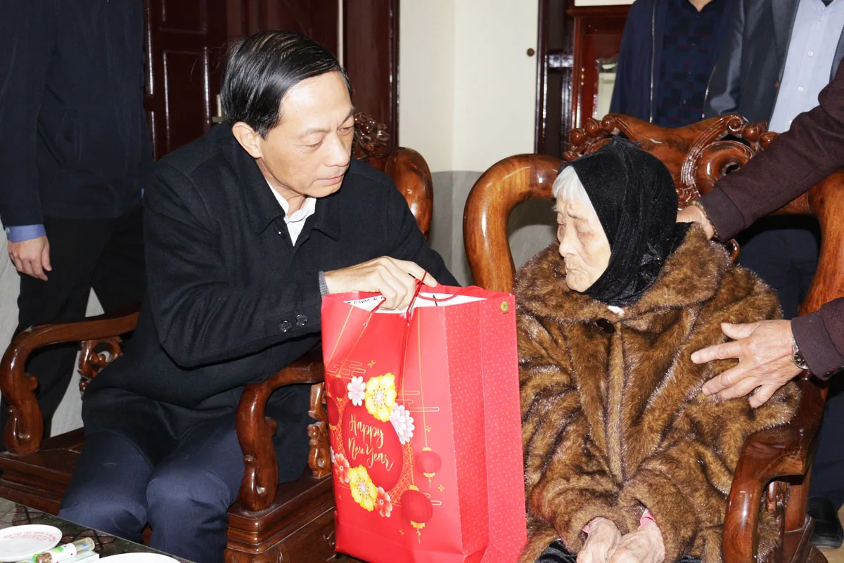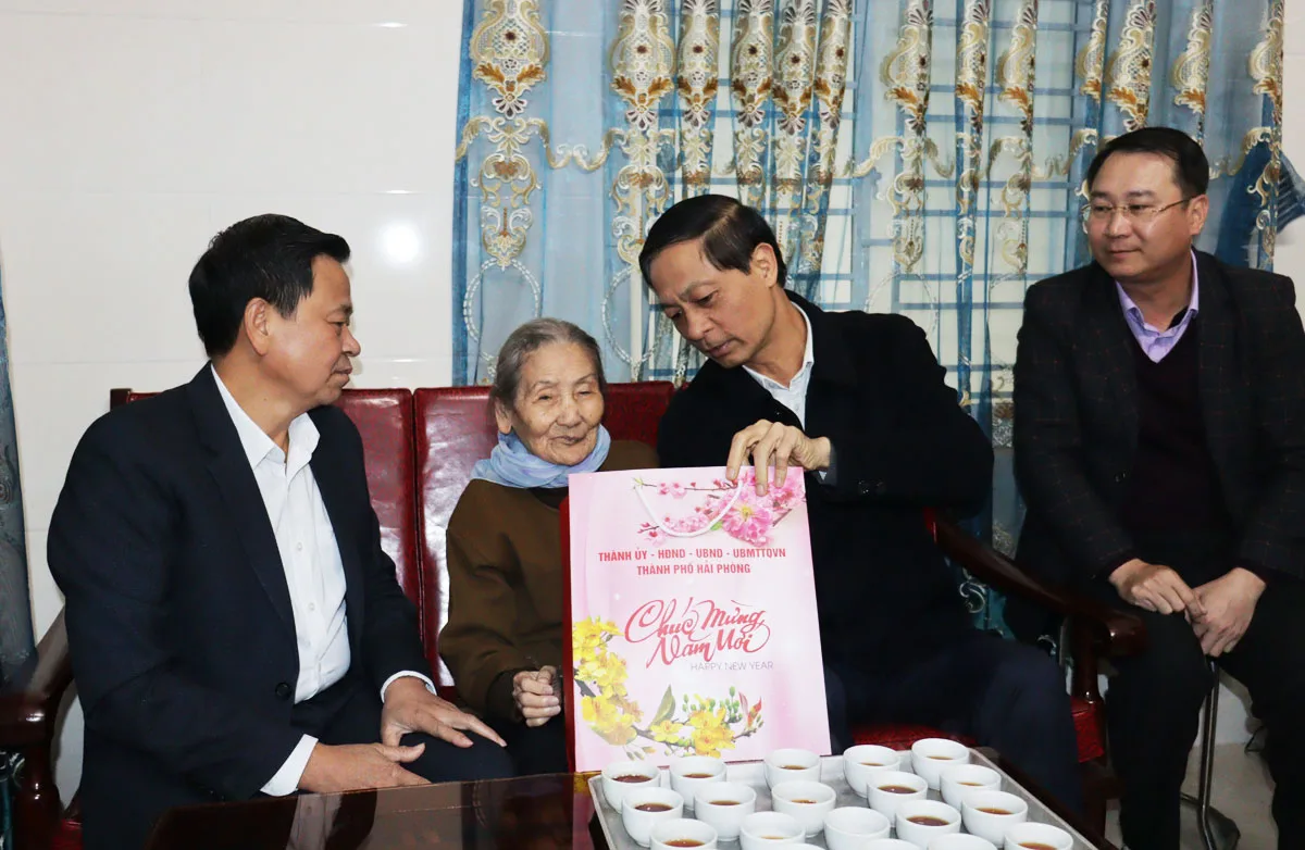 Đồng chí Phó Bí thư Thường trực Thành ủy đến thăm, tặng quà, chúc Tết bà Ngô Thị Tạo (tức Xuân), sinh năm 1929, là cán bộ lão thành cách mạng tham gia hoạt động từ năm 1944, vào đảng năm 1947, nguyên Cửa hàng phó cửa hàng thực phẩm quận Lê Chân, tại số 14/38/278 Đà Nẵng, phường Vạn Mỹ, quận Ngô Quyền và thăm, tặng quà, chúc Tết ông Đặng Trinh Lương, sinh năm 1931, là cán bộ lão thành cách mạng tham gia hoạt động từ năm 1944, vào đảng năm 1949, nguyên công an tỉnh Lai Châu, tại số nhà 32 Hàng Gà, Hai Bà Trưng, phường Cát Dài, quận Lê Chân.