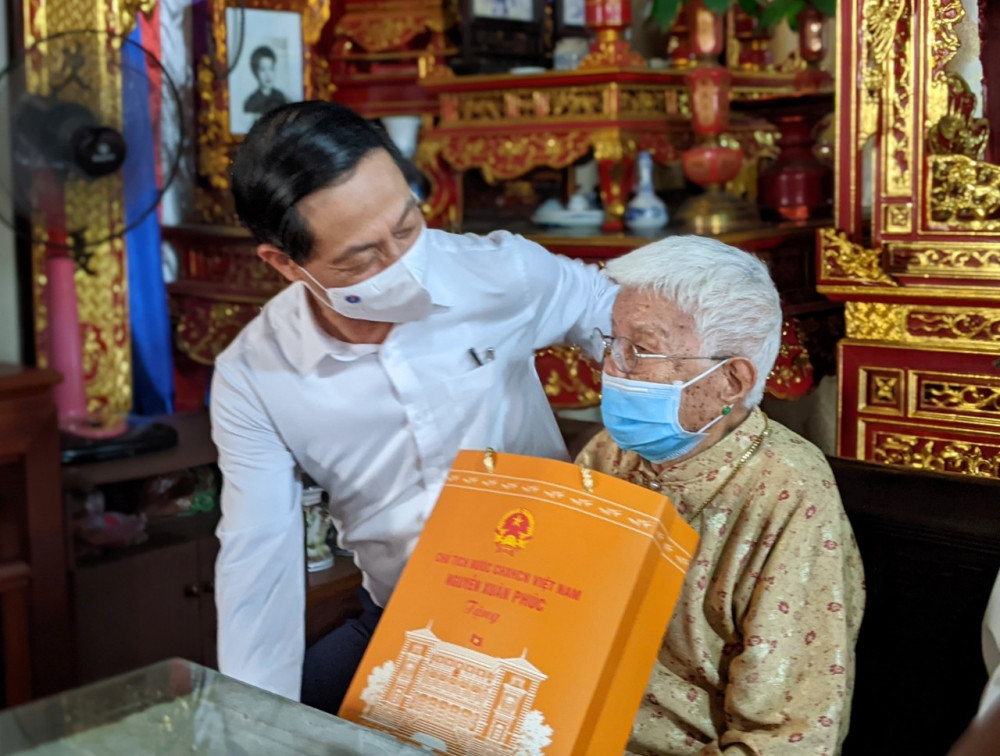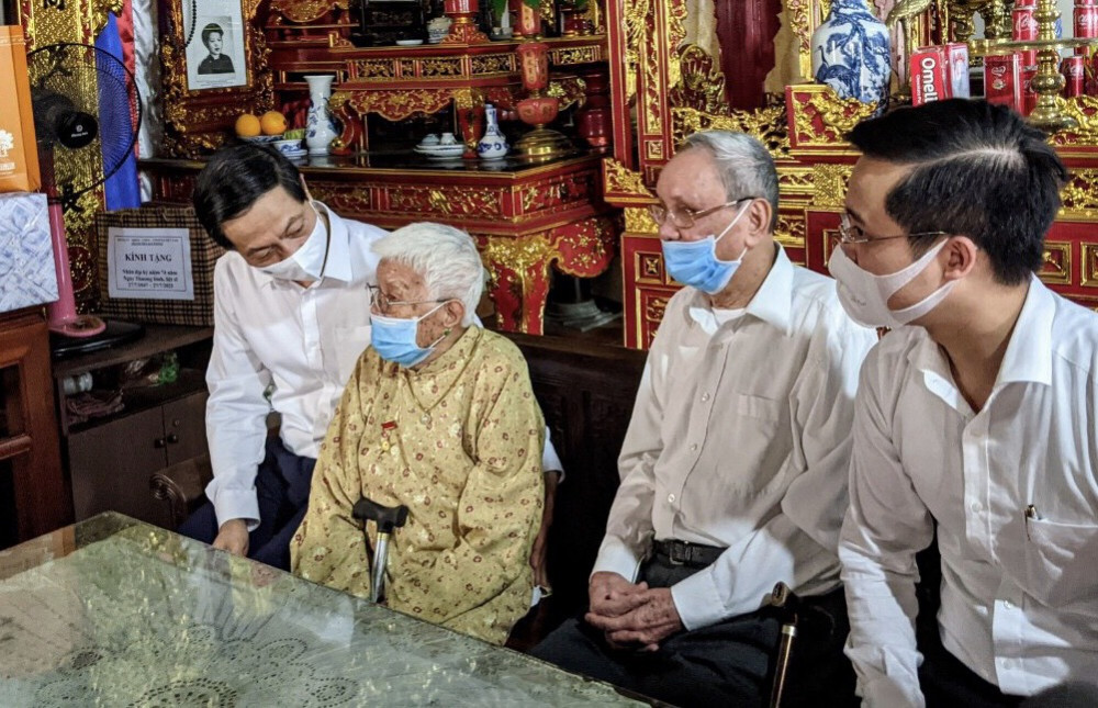 Đồng chí Đỗ Mạnh Hiến, Phó Bí thư Thường trực Thành ủy thăm hỏi, tặng quà Mẹ Việt Nam anh hùng Trần Thị Bệ