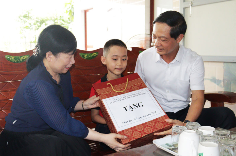 Tới thăm, tặng quà Tết Trung thu cháu Phạm Thanh Sơn, sinh năm 2013, học sinh lớp 4A, Trường Tiểu học Đông Hưng, xã Đông Hưng, huyện Tiên Lãng, là học sinh có hoàn cảnh khó khăn. Đồng chí Phó Bí thư Thường trực Thành ủy chúc cháu có một mùa trung thu vui vẻ, ấm áp; đồng thời động viên cháu tiếp tục phấn đấu rèn luyện, vượt lên hoàn cảnh khó khăn để học tập tốt, luôn là con ngoan trò giỏi, chỗ dựa tinh thần cho gia đình.