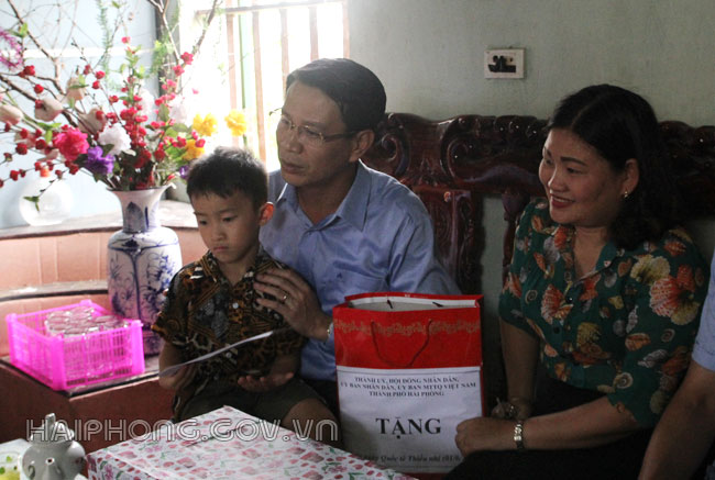 Phó Chủ tịch HĐND thành phố ân cần hỏi thăm tình hình, sức khỏe cháu Kiệt, đồng thời động viên cháu tiếp tục vươn lên phấn đấu là con ngoan, trò giỏi và động viên gia đình tiếp tục nỗ lực cố gắng vượt qua khó khăn trong cuộc sống.