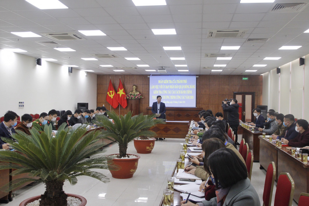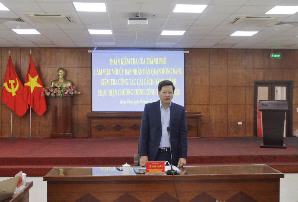 Qua kiểm tra và nghe báo cáo tại cuộc họp, Phó Chủ tịch Thường trực Lê Anh Quân ghi nhận và đánh giá cao những kết quả mà quận Hồng Bàng đạt được trong công tác CCHC. Kể từ khi thành phố thực hiện đánh giá, xếp hạng Chỉ số CCHC của các quận, huyện (từ năm 2013) với cách làm hay và hiệu quả, quận Hồng Bàng luôn giữ vị trí thứ nhất, riêng năm 2019 quận xếp thứ 2 sau quận Ngô Quyền; xếp hạng chỉ số hài lòng của người dân và tổ chức đối với sự phục vụ của quận Hồng Bàng có sự cải thiện rõ rệt trong 2 năm gần đây. Phó Chủ tịch Thường trực đề nghị, thời gian tới quận cần khẩn trương khắc phục những mặt hạn chế mà Đoàn kiểm tra đã nêu, trong đó cần chú trọng công tác tuyên truyền để các cá nhân và tổ chức quan tâm sử dụng nhiều hơn dịch vụ công trực tuyến; sắp xếp lại các phòng ban chuyên môn đảm bảo đúng quy định, nâng cao chất lượng nguồn nhân lực…