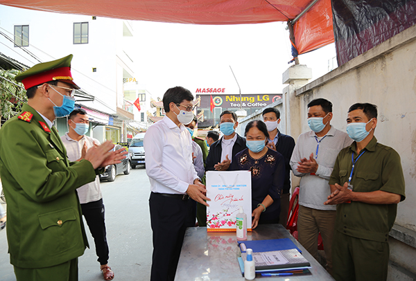Kiểm tra, động viên và tặng quà tại các Chốt kiểm soát phòng, chống dịch COVID-19 tại thôn Đồng Xuân, xã Hồng Phong và thôn Trạm Bạc, xã Lê Lợi, huyện An Dương, Phó Chủ tịch Thường trực UBND thành phố ghi nhận và đánh giá cao Chốt đã thực hiện nghiêm các Văn bản chỉ đạo của UBND thành phố cũng như hướng dẫn của ngành Y tế về công tác phòng, chống dịch COVID-19. Để công tác phòng, chống dịch hiệu quả hơn, Phó Chủ tịch Thường trực Lê Anh Quân yêu cầu các Chốt kiểm soát nghiêm túc thực hiện việc khai báo y tế đối với người dân ra vào, lập danh sách, ghi rõ địa chỉ, số điện thoại để khi cần các cơ quan chức năng thuận lợi trong việc truy vết.