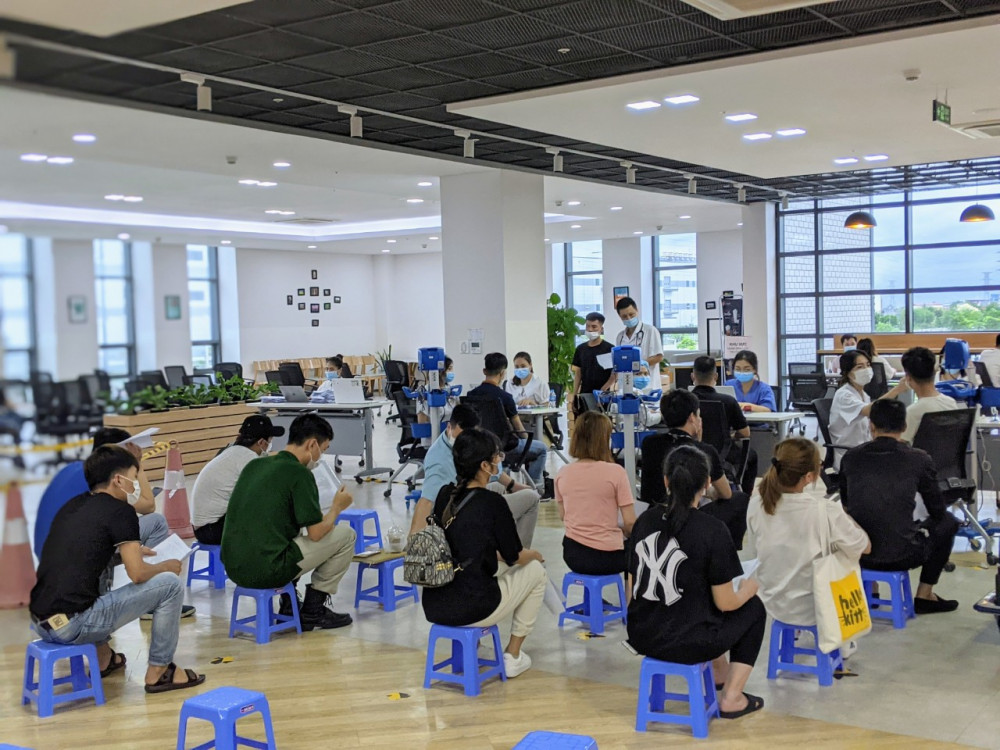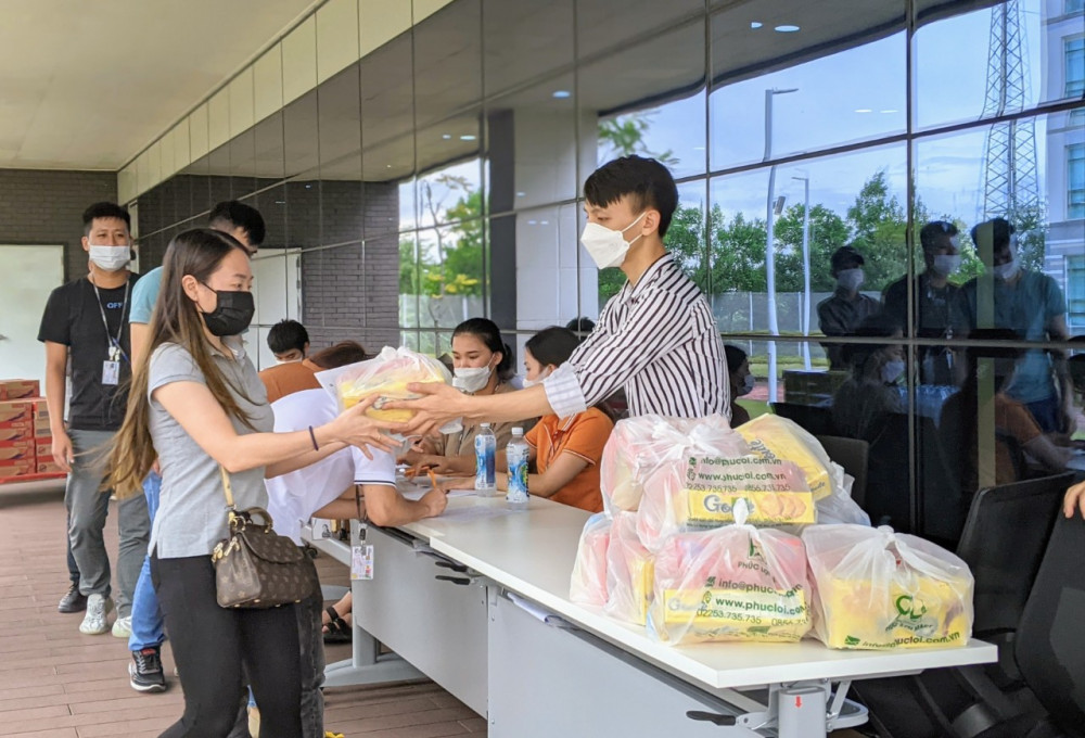 Tại điểm tiêm chủng của Công ty TNHH LG Display Việt Nam, Công đoàn Công ty đã chuẩn bị chu đáo các túi quà đồ ăn nhẹ gồm: bánh, sữa, nước và trái cây để tặng cho công nhân và người lao động sau khi tiêm.