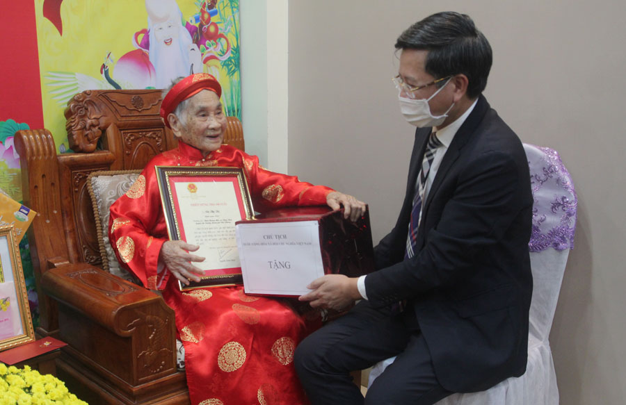 Thay mặt lãnh đạo thành phố, đồng chí Phó Chủ tịch Thường trực UBND thành phố chúc các cụ luôn luôn trường thọ, sống lâu, là chỗ dựa tinh thần cho con cháu; tiếp tục giáo dục con cháu phát huy truyền thống gia đình tập trung phát triển kinh tế, xây dựng gia đình ngày càng lớn mạnh, quê hương ngày càng giàu đẹp hơn. Đồng chí đề nghị cấp ủy Đảng, chính quyền địa phương tiếp tục quan tâm chăm lo cho các cụ, các gia đình chính sách, người có công với cách mạng đều có cuộc sống ấm lo, hạnh phúc.