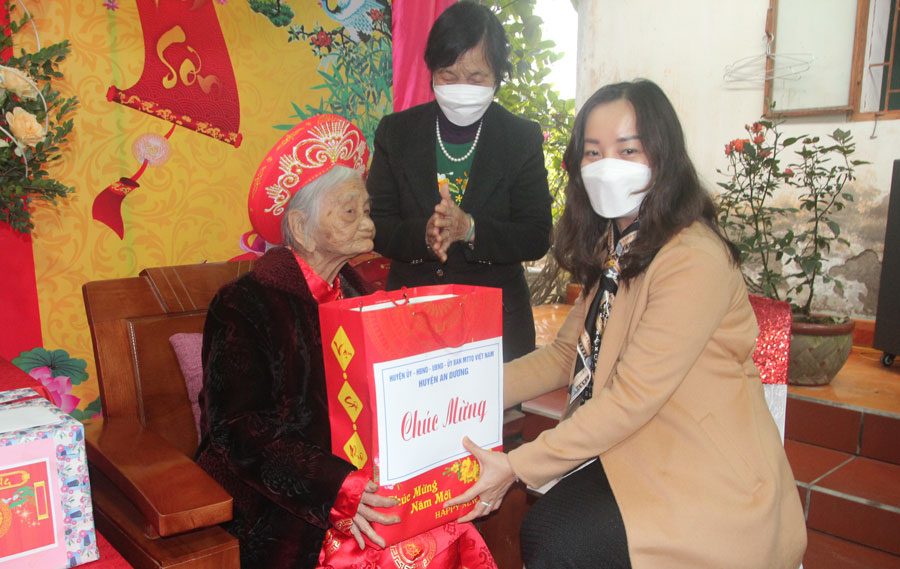 Chiều 9/2, đồng chí Lê Anh Quân, Ủy viên Ban Thường vụ Thành ủy, Phó Chủ tịch Thường trực UBND thành phố tới thăm, trao Thiếp mừng thọ của Chủ tịch nước cho công dân 100 tuổi tại huyện An Dương. Cùng đi có đại diện lãnh đạo Sở Lao động-Thương binh và Xã hội, Văn phòng UBND thành phố và lãnh đạo huyện An Dương.