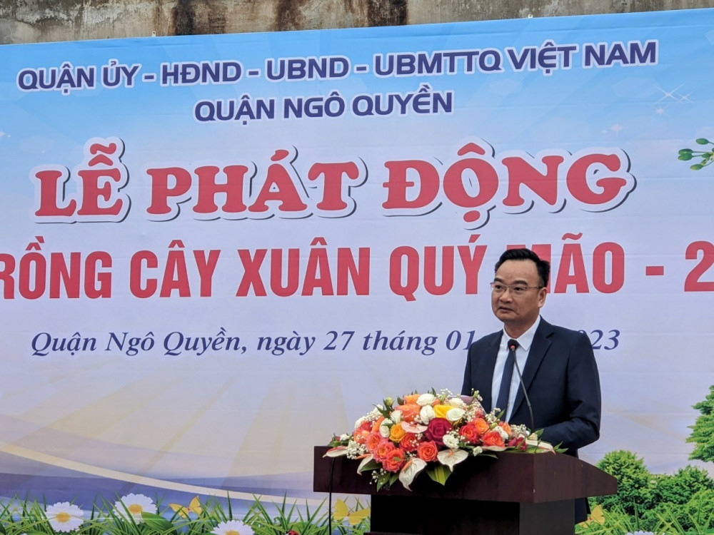Phát biểu tại Lễ phát động, đồng chí Lê Chưởng, Phó Chủ tịch UBND quận Ngô Quyền nhấn mạnh, Tết trồng cây đã trở thành một phong trào quần chúng sâu rộng, thành nét đẹp trong truyền thống văn hóa của dân tộc Việt Nam. Hưởng ứng lời kêu gọi của Chủ tịch Hồ Chí Minh, hòa chung khí thế thi đua sôi nổi của cả nước và thành phố, quận Ngô Quyền luôn xác định việc trồng cây xanh làm việc làm hết sức quan trọng, gắn liền với quá trình phát triển toàn diện-bền vững của quận, không chỉ cho hôm nay mà còn cho các thế hệ mai sau.