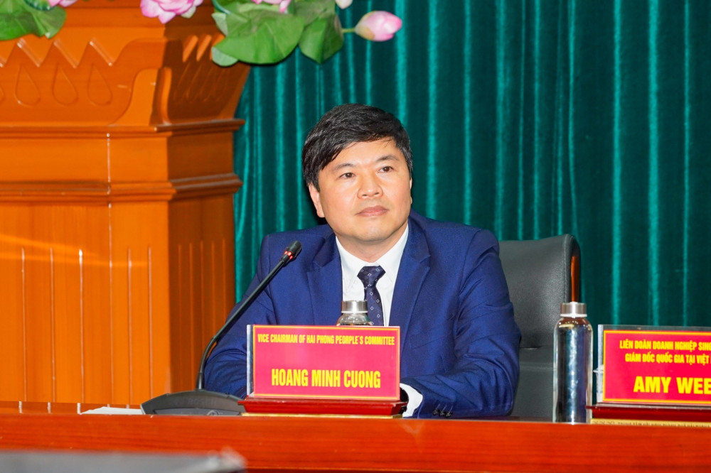 Chào mừng Đoàn công tác Liên đoàn doanh nghiệp Singapore đến làm việc tại Hải Phòng, Phó Chủ tịch UBND thành phố Hoàng Minh Cường thông tin nhanh về tình hình phát triển của thành phố. Với vị trí địa lý thuận lợi, Hải Phòng có cả 5 loại hình giao thông, trong đó thế mạnh là cảng biển. Nhờ đó, Hải Phòng có tốc độ phát triển nằm trong tốp đầu cả nước và là điểm sáng thu hút đầu tư nước ngoài.