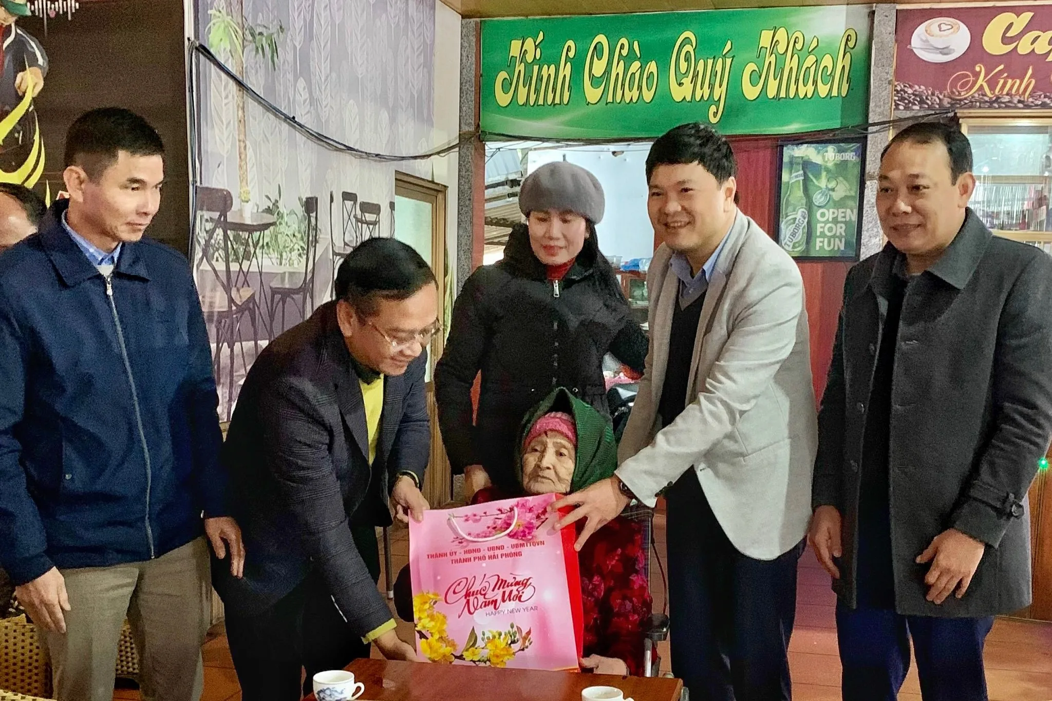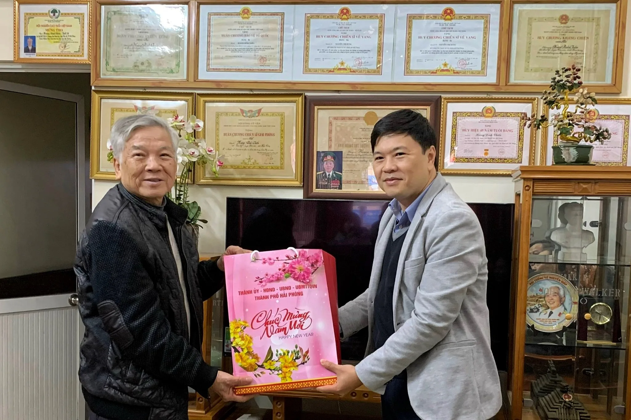 Cũng trong sáng 23/1, Phó Chủ tịch UBND thành phố Hoàng Minh Cường đến thăm, chúc Tết, tặng quà ông Hoàng Đình Chiến, sinh năm 1952, Anh hùng Lực lượng vũ trang nhân dân tại số nhà 111 Phan Đăng Lưu, phường Trần Thành Ngọ, quận Kiến An; bà Nguyễn Thị Quyết, sinh năm 1933, vợ liệt sĩ Nguyễn Văn Ánh tại thôn Khôi Vĩ Thượng, xã Quang Phục, huyện Tiên Lãng và bà Phan Thị Nhàn, sinh năm 1959, là hộ nghèo tại thôn Phác Xuyên, xã Bạch Đằng, huyện Tiên Lãng.