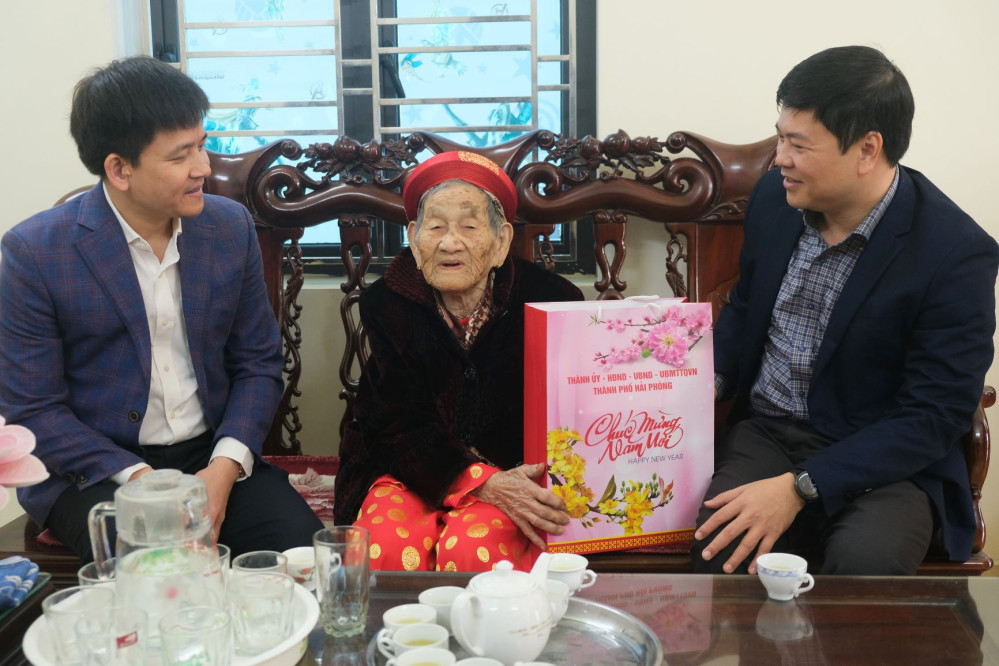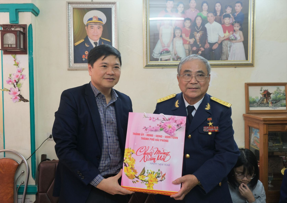 Đến thăm, chúc Tết, tặng quà bà Đào Thị Bé, sinh năm 1948, ở thôn 5, xã Tân Dương (huyện Thủy Nguyên), là vợ liệt sỹ; cụ Lê Thị Truật, sinh năm 1930, ở thôn 1, xã Thiên Hương (huyện Thủy Nguyên), người hoạt động kháng chiến bị địch bắt tù, đày; ông Phạm Viết Bảo, sinh năm 1950, ở số 3C Trần Khánh Dư, phường Máy Tơ (quận Ngô Quyền), là Anh hùng lao động và cụ Vũ Văn Ngữ, sinh năm 1923, ở số 14/11 Hai Bà Trưng, phường An Biên (quận Lê Chân), công dân 100 tuổi.