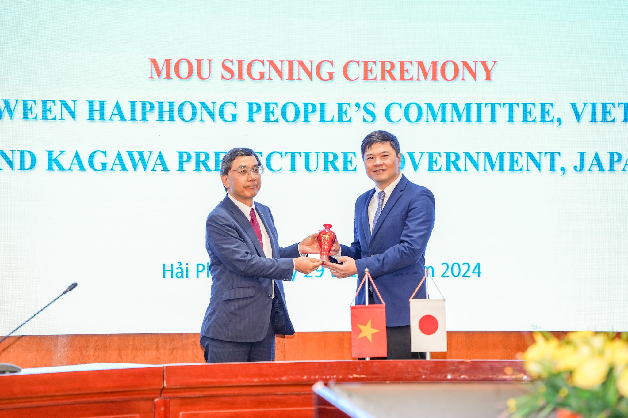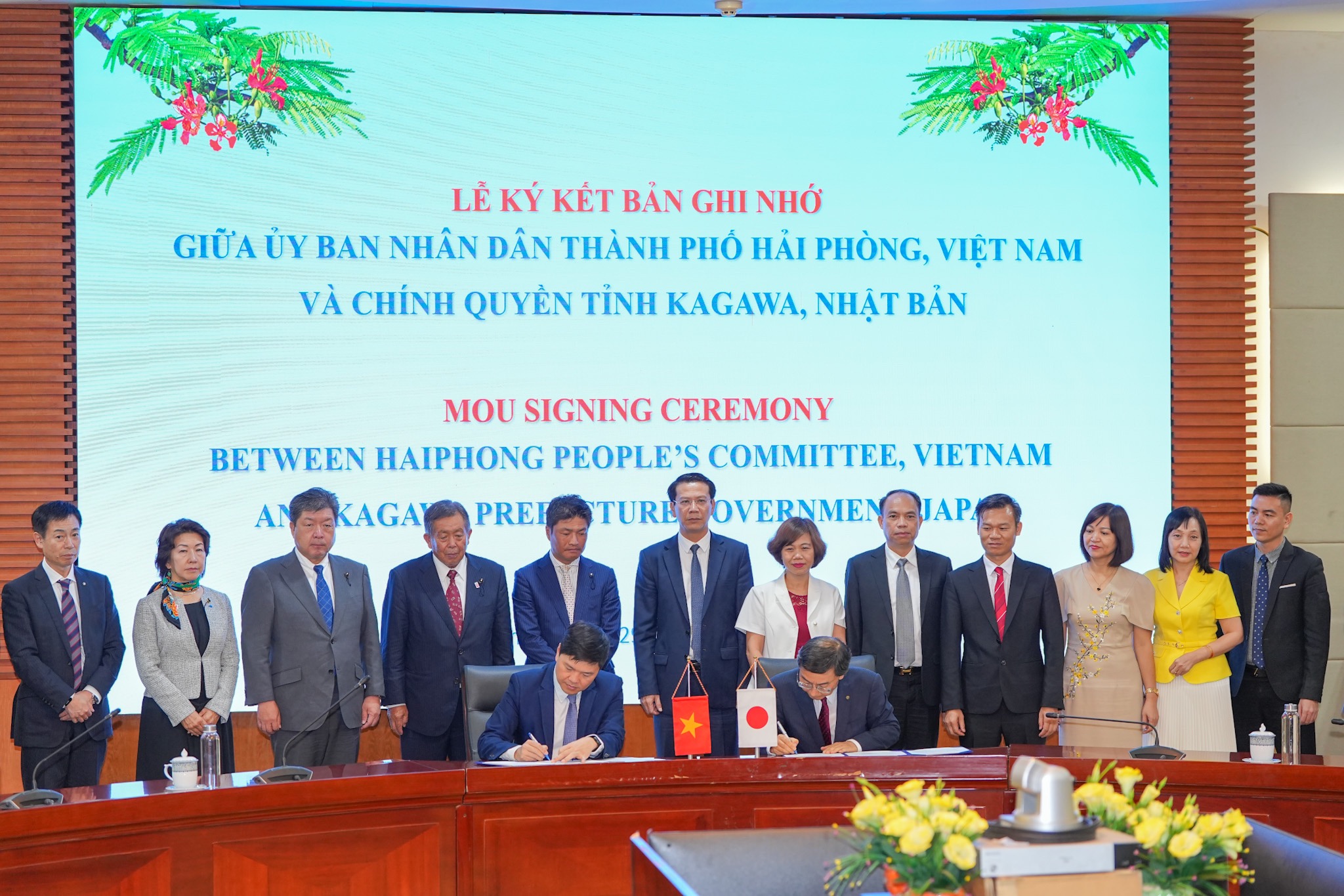 Tại buổi tiếp, lãnh đạo hai địa phương ký kết thỏa thuận hợp tác giữa tỉnh Kagawa và thành phố Hải Phòng.