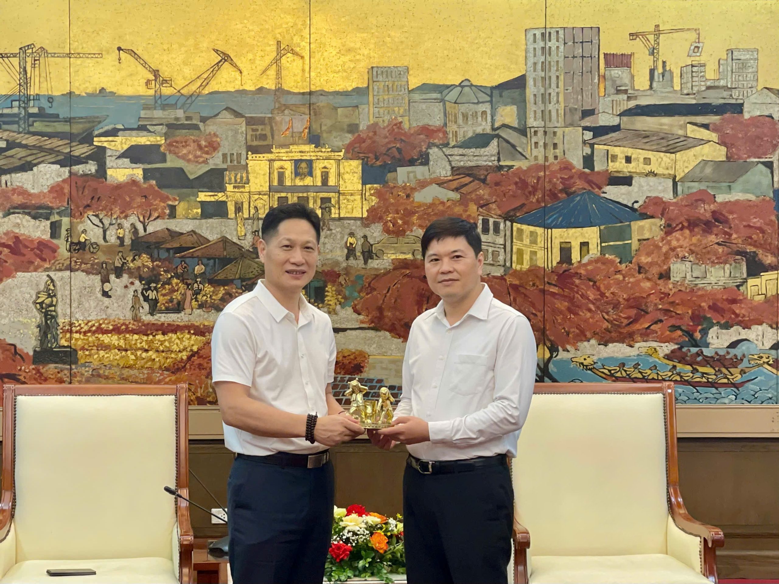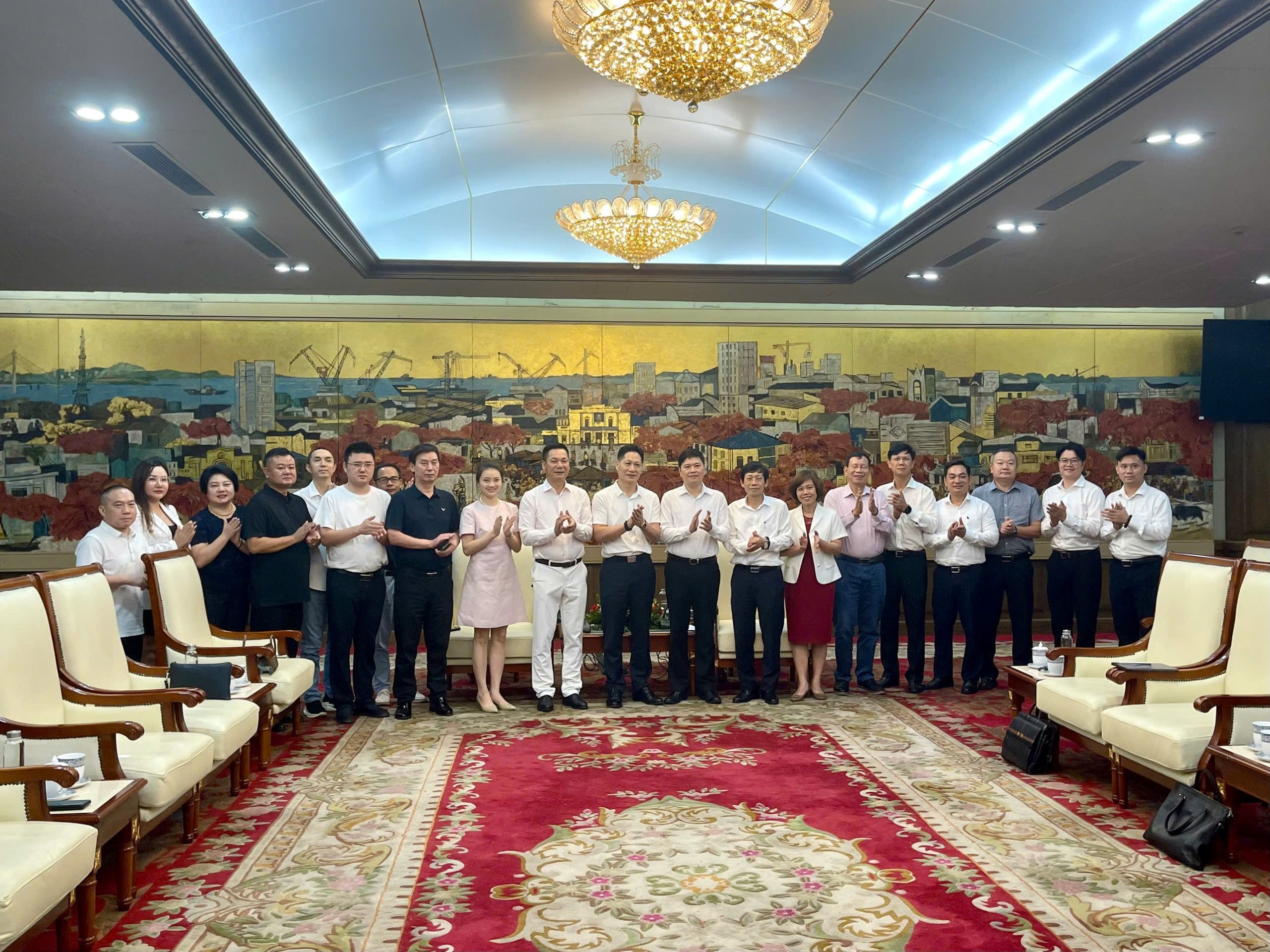 Chiều 23/8, Phó Chủ tịch UBND thành phố Hoàng Minh Cường tiếp Đoàn doanh nghiệp Trung Quốc đến khảo sát và tìm kiếm cơ hội hợp tác đầu tư tại thành phố Hải Phòng do Chủ tịch Hội đồng quản trị Tập đoàn An Tín – Bàng Cương Chí làm Trưởng đoàn. Cùng dự buổi tiếp có lãnh đạo các Sở, ngành liên quan.