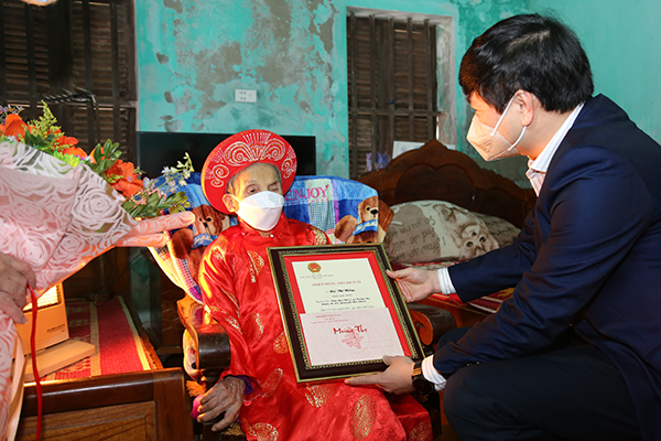 Sáng 14/2, Nhân dịp Tết Nguyên đán Nhâm Dần 2022, đồng chí Hoàng Minh Cường, Phó Chủ tịch UBND thành phố cùng đại diện lãnh đạo các sở, ngành, địa phương liên quan đi trao Thiếp mừng thọ của Chủ tịch nước cho công dân 100 tuổi trên địa bàn huyện An Lão.